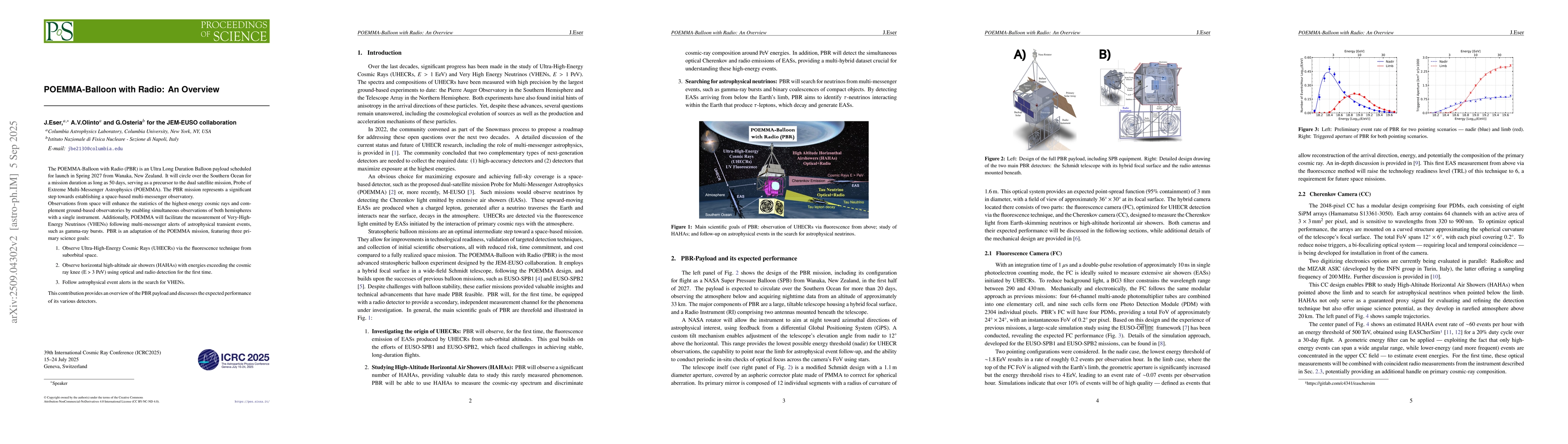 The POEMMA-Balloon with Radio (PBR) is an Ultra Long Duration Balloon payload scheduled for launch in Spring 2027 from Wanaka, New Zealand. It will circle over the Southern Ocean for a mission duration as long as 50 days, serving as a precursor to the dual satellite mission, Probe of Extreme Multi-Messenger Astrophysics (POEMMA). The PBR mission represents a significant step towards establishing a space-based multi-messenger observatory. Observations from space will enhance the statistics of the highest-energy cosmic rays and complement ground-based observatories by enabling simultaneous observations of both hemispheres with a single instrument. Additionally, POEMMA will facilitate the measurement of Very-High-Energy Neutrinos (VHENs) following multi-messenger alerts of astrophysical transient events, such as gamma-ray bursts. PBR is an adaptation of the POEMMA mission, featuring three primary science goals: 1. Observe Ultra-High-Energy Cosmic Rays (UHECRs) via the fluorescence technique from suborbital space. 2. Observe horizontal high-altitude air showers (HAHAs) with energies exceeding the cosmic ray knee (E > 3 PeV) using optical and radio detection for the first time. 3. Follow astrophysical event alerts in the search for VHENs. This contribution provides an overview of the PBR payload and discusses the expected performance of its various detectors.