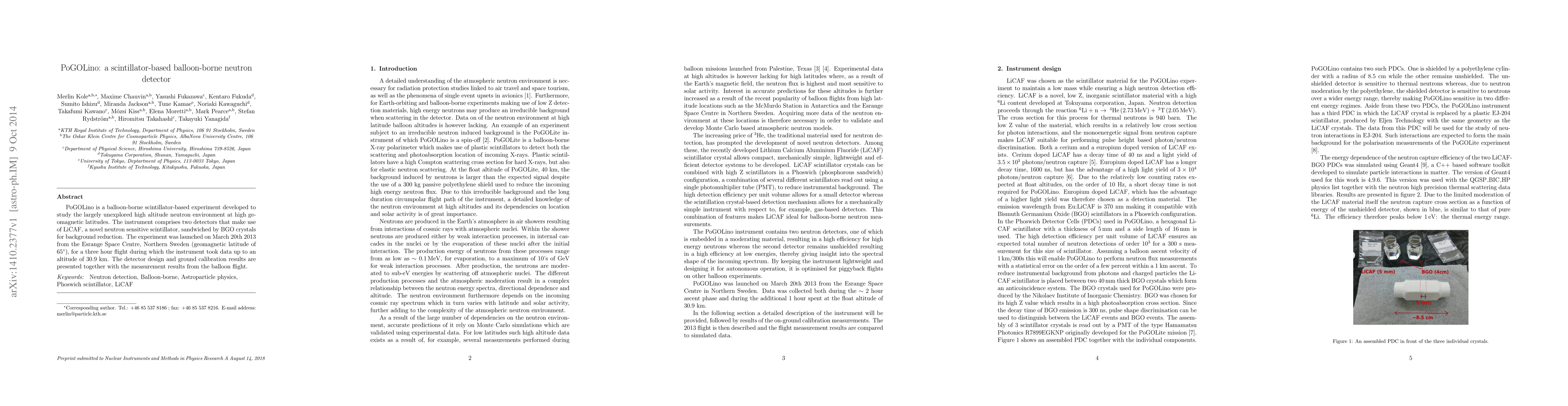 PoGOLino is a balloon-borne neutron detector using LiCAF scintillator and BGO crystals for background reduction, launched in 2013 to study high altitude neutron environments at high geomagnetic latitudes. The experiment provided data on neutron flux up to 30.9 km altitude.