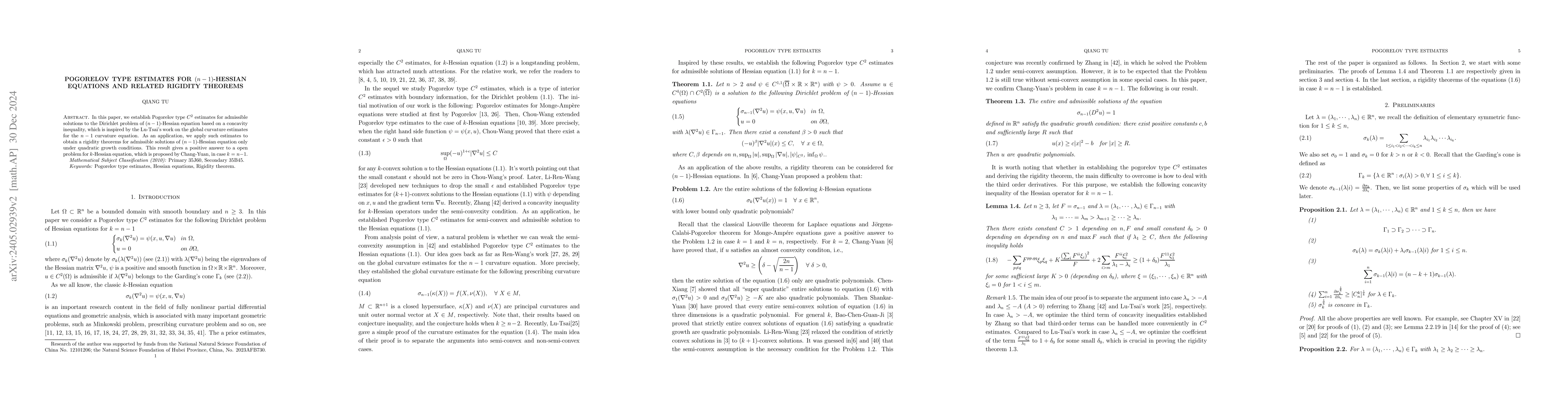 In this paper, we establish Pogorelov type $C^2$ estimates for semi-convex admissible solutions to the Dirichlet problem of $k$-Hessian equation with general right hand side. Under some sufficient conditions, we apply such estimates to obtain rigidity theorems for semi-convex admissible solutions of $k$-Hessian equation, which can be seen as a improvement of Li-Ren-Wang and Chu-Dinew's rigidity theorem for $k$-Hessian equation. When $2k>n$, we also obtain Pogorelov type $C^2$ estimates for admissible solutions to the Dirichlet problem of $k$-Hessian equation based on a concavity inequality, which is inspired by the Ren-Wang's work on the global curvature estimates for the $n-1$ and $n-2$ curvature equation.
