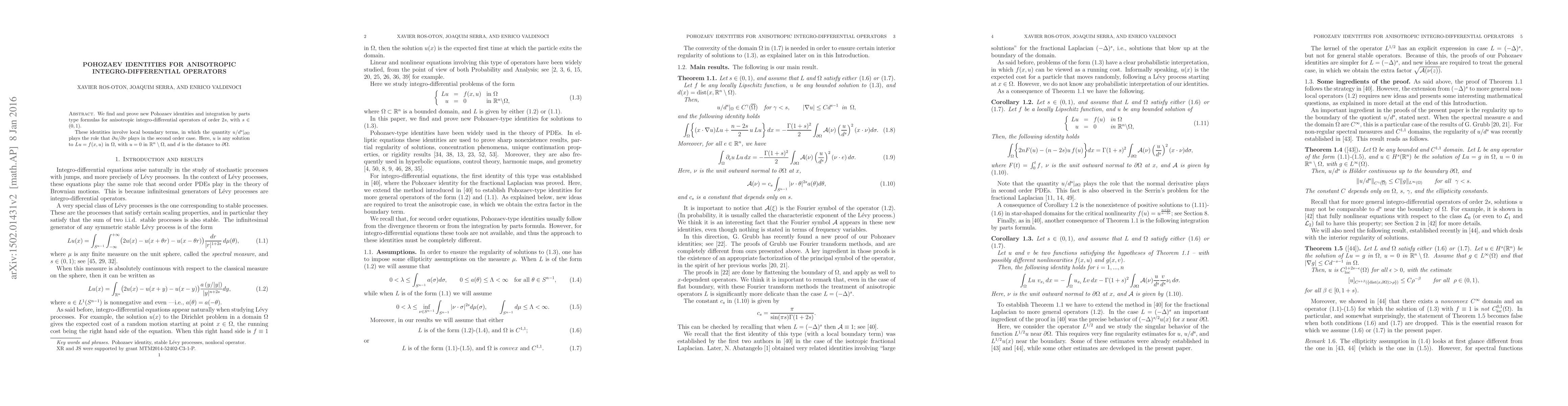 This paper establishes Pohozaev identities and integration by parts formulas for anisotropic integro-differential operators of order $2s$ ($s\in(0,1)$), introducing local boundary terms where $u/d^s|_{\partial\Omega}$ replaces $\partial u/\partial\nu$ in the second-order case.