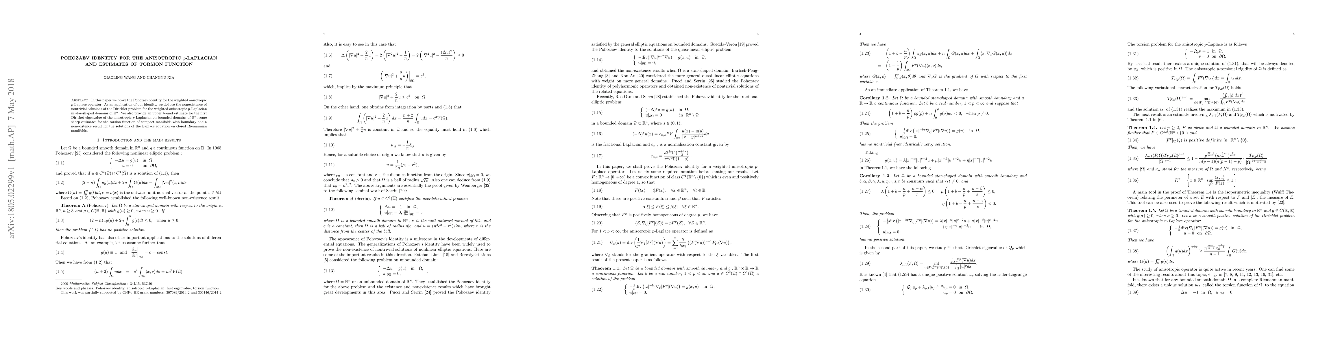 In this paper we prove the Pohozaev identity for the weighted anisotropic $p$-Laplace operator. As an application of our identity, we deduce the nonexistence of nontrivial solutions of the Dirichlet problem for the weighted anisotropic $p$-Laplacian in star-shaped domains of $\mathbb{R}^n$. We also provide an upper bound estimate for the first Dirichet eigenvalue of the anisotropic $p$-Laplacian on bounded domains of $\mathbb{R}^n$, some sharp estimates for the torsion function of compact manifolds with boundary and a nonexistence result for the solutions of the Laplace equation on closed Riemannian manifolds.