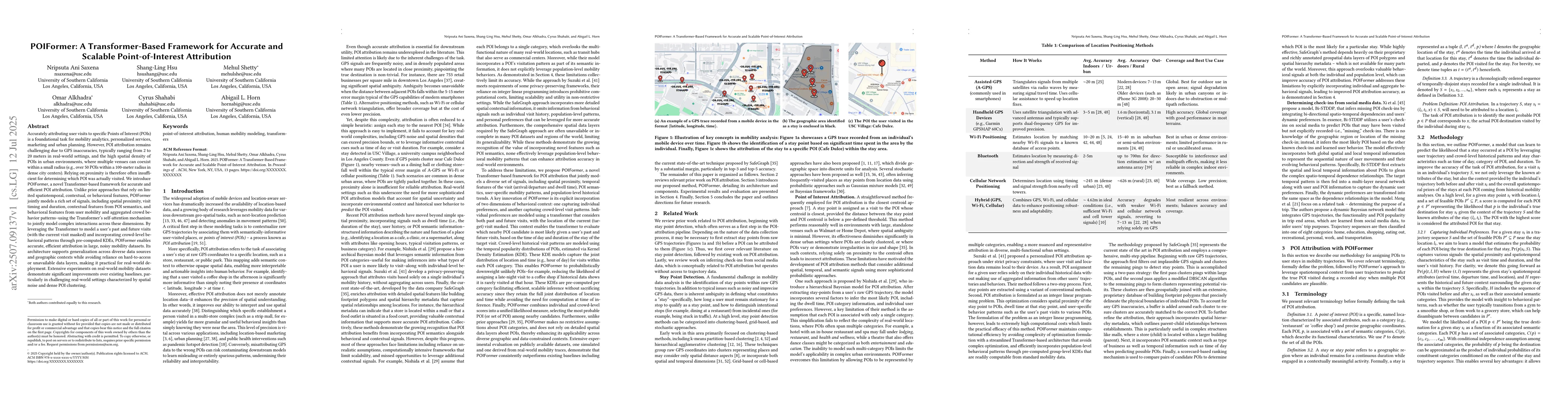 Accurately attributing user visits to specific Points of Interest (POIs) is a foundational task for mobility analytics, personalized services, marketing and urban planning. However, POI attribution remains challenging due to GPS inaccuracies, typically ranging from 2 to 20 meters in real-world settings, and the high spatial density of POIs in urban environments, where multiple venues can coexist within a small radius (e.g., over 50 POIs within a 100-meter radius in dense city centers). Relying on proximity is therefore often insufficient for determining which POI was actually visited. We introduce \textsf{POIFormer}, a novel Transformer-based framework for accurate and efficient POI attribution. Unlike prior approaches that rely on limited spatiotemporal, contextual, or behavioral features, \textsf{POIFormer} jointly models a rich set of signals, including spatial proximity, visit timing and duration, contextual features from POI semantics, and behavioral features from user mobility and aggregated crowd behavior patterns--using the Transformer's self-attention mechanism to jointly model complex interactions across these dimensions. By leveraging the Transformer to model a user's past and future visits (with the current visit masked) and incorporating crowd-level behavioral patterns through pre-computed KDEs, \textsf{POIFormer} enables accurate, efficient attribution in large, noisy mobility datasets. Its architecture supports generalization across diverse data sources and geographic contexts while avoiding reliance on hard-to-access or unavailable data layers, making it practical for real-world deployment. Extensive experiments on real-world mobility datasets demonstrate significant improvements over existing baselines, particularly in challenging real-world settings characterized by spatial noise and dense POI clustering.