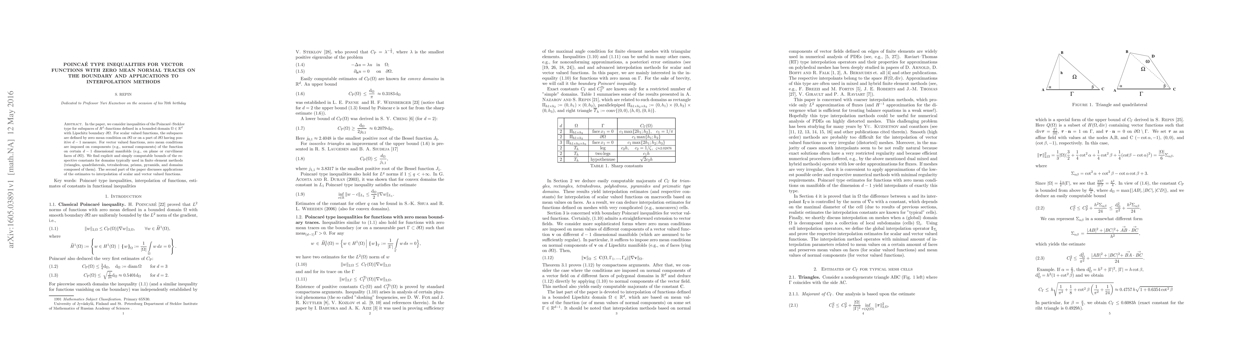 In the paper, we consider inequalities of the Poincar\'e--Steklov type for subspaces of $H^1$-functions defined in a bounded domain $\Omega\in \Rd$ with Lipschitz boundary $\partial\Omega$. For scalar valued functions, the subspaces are defined by zero mean condition on $\partial\Omega$ or on a part of $\partial\Omega$ having positive $d-1$ measure. For vector valued functions, zero mean conditions are imposed on components (e.g., normal components) of the function on certain $d-1$ dimensional manifolds (e.g., on plane or curvilinear faces of $\partial\Omega$). We find explicit and simply computable bounds of the respective constants for domains typically used in finite element methods (triangles, quadrilaterals, tetrahedrons, prisms, pyramids, and domains composed of them). The second part of the paper discusses applications of the estimates to interpolation of scalar and vector valued functions. %383838