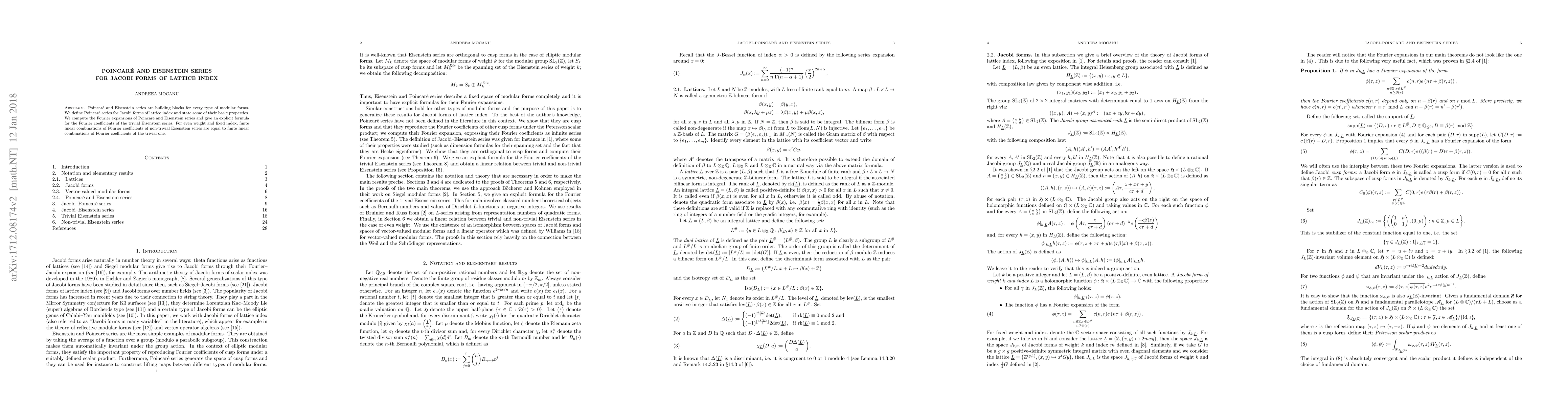 The paper introduces a method for defining and analyzing Poincaré series for Jacobi forms of lattice index, including detailed computations of Fourier expansions and coefficients.