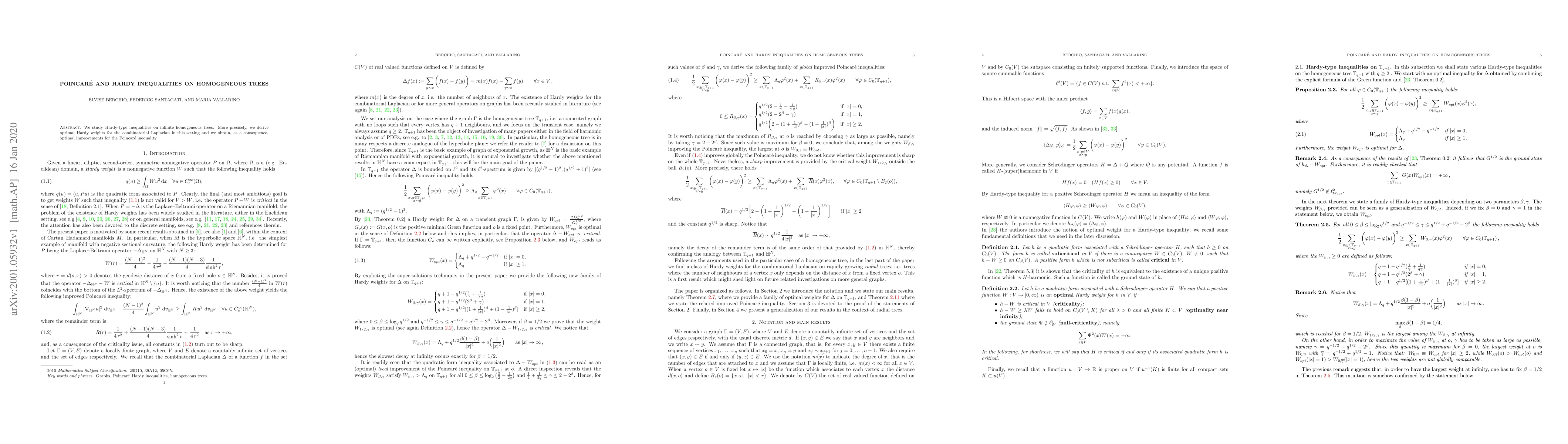 This paper investigates Hardy-type inequalities on infinite homogeneous trees, deriving optimal Hardy weights for the combinatorial Laplacian and achieving optimal improvements for the Poincaré inequality as a result.