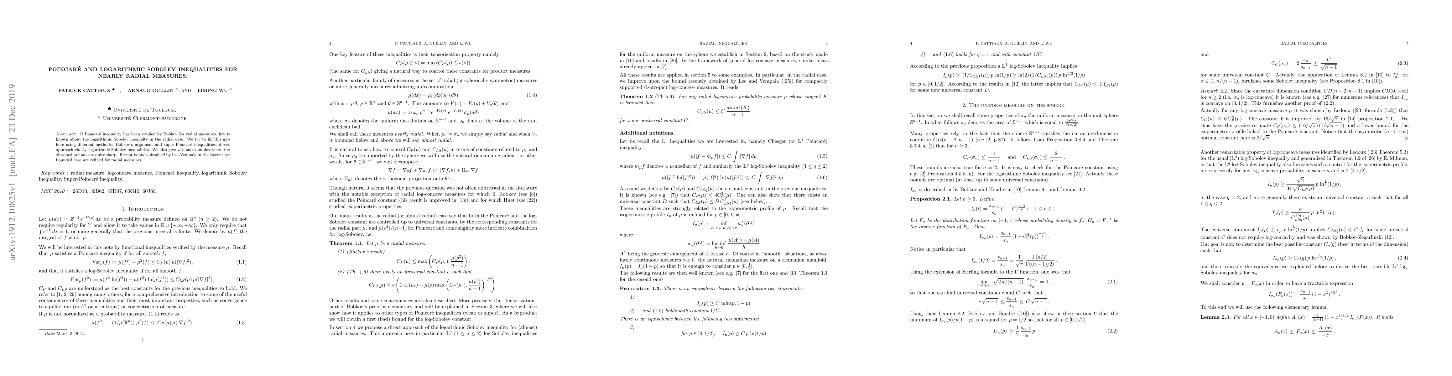 This paper explores the logarithmic Sobolev inequalities for nearly radial measures, filling gaps left by Bobkov's study of Poincaré inequalities for radial measures. It employs diverse methods including Bobkov's argument, super-Poincaré inequalities, and an L1-logarithmic Sobolev approach, and refines recent bounds by Lee-Vempala for radial measures.