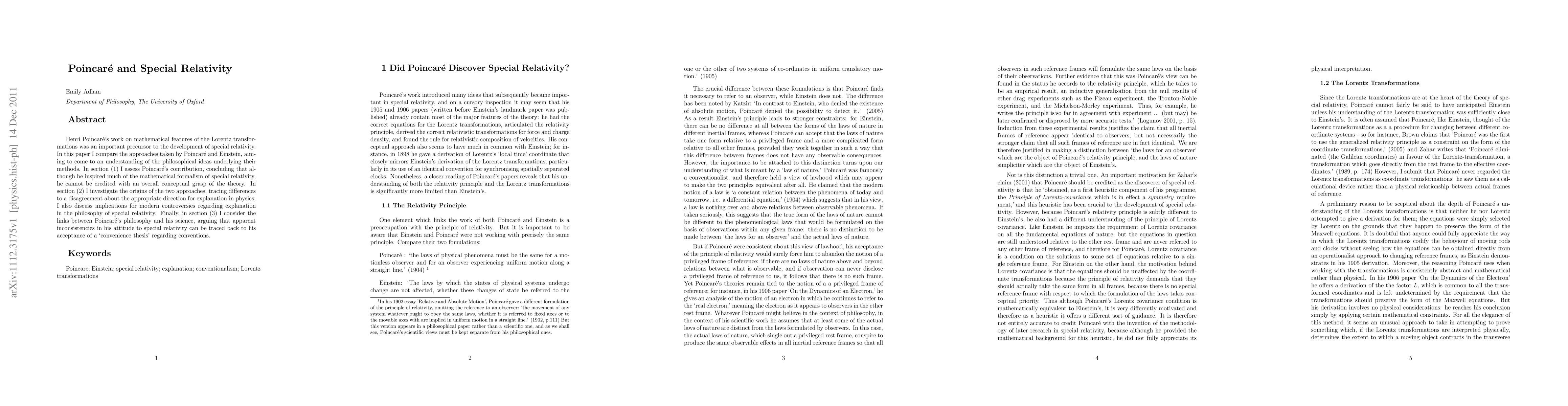 This paper compares Henri Poincare's and Albert Einstein's contributions to the development of special relativity, highlighting Poincare's mathematical insights while noting his lack of conceptual grasp. It explores the philosophical differences between their approaches and discusses implications for modern debates in the philosophy of science.