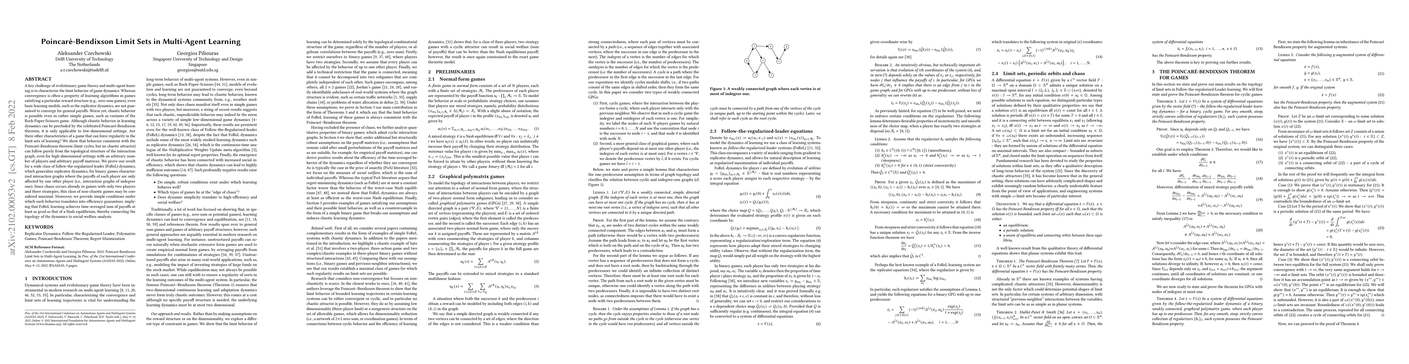 A key challenge of evolutionary game theory and multi-agent learning is to characterize the limit behavior of game dynamics. Whereas convergence is often a property of learning algorithms in games satisfying a particular reward structure (e.g., zero-sum games), even basic learning models, such as the replicator dynamics, are not guaranteed to converge for general payoffs. Worse yet, chaotic behavior is possible even in rather simple games, such as variants of the Rock-Paper-Scissors game. Although chaotic behavior in learning dynamics can be precluded by the celebrated Poincar\'e-Bendixson theorem, it is only applicable to low-dimensional settings. Are there other characteristics of a game that can force regularity in the limit sets of learning? We show that behavior consistent with the Poincar\'e-Bendixson theorem (limit cycles, but no chaotic attractor) can follow purely from the topological structure of the interaction graph, even for high-dimensional settings with an arbitrary number of players and arbitrary payoff matrices. We prove our result for a wide class of follow-the-regularized leader (FoReL) dynamics, which generalize replicator dynamics, for binary games characterized interaction graphs where the payoffs of each player are only affected by one other player (i.e., interaction graphs of indegree one). Since chaos occurs already in games with only two players and three strategies, this class of non-chaotic games may be considered maximal. Moreover, we provide simple conditions under which such behavior translates into efficiency guarantees, implying that FoReL learning achieves time-averaged sum of payoffs at least as good as that of a Nash equilibrium, thereby connecting the topology of the dynamics to social-welfare analysis.