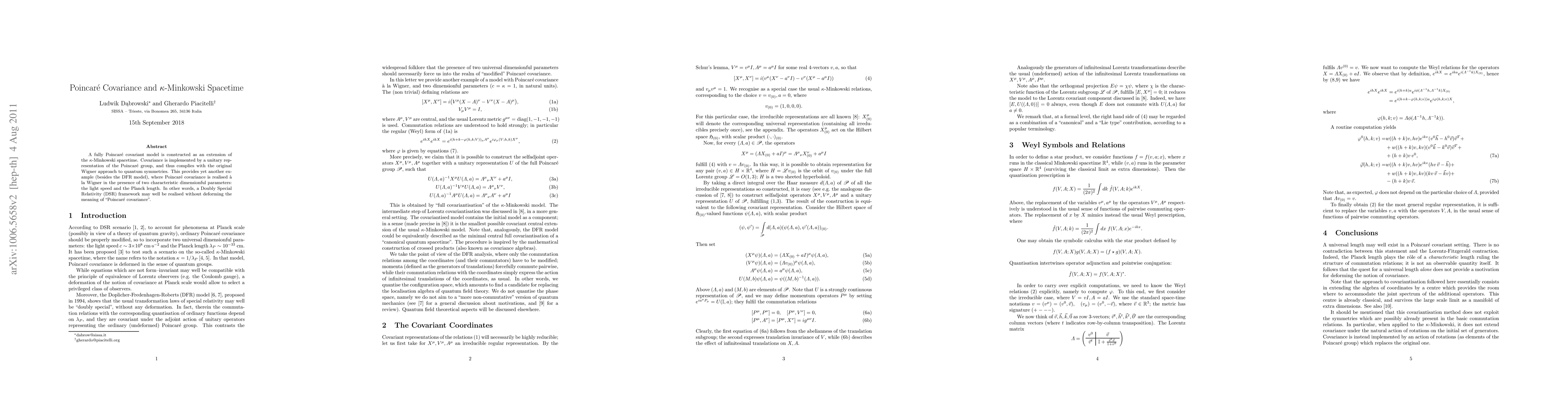 A fully Poincare' covariant model is constructed out of the k-Minkowski spacetime. Covariance is implemented by a unitary representation of the Poincare' group, and thus complies with the original Wigner approach to quantum symmetries. This provides yet another example (besides the DFR model), where Poincare' covariance is realised a` la Wigner in the presence of two characteristic dimensionful parameters: the light speed and the Planck length. In other words, a Doubly Special Relativity (DSR) framework may well be realised without deforming the meaning of "Poincare covariance".
