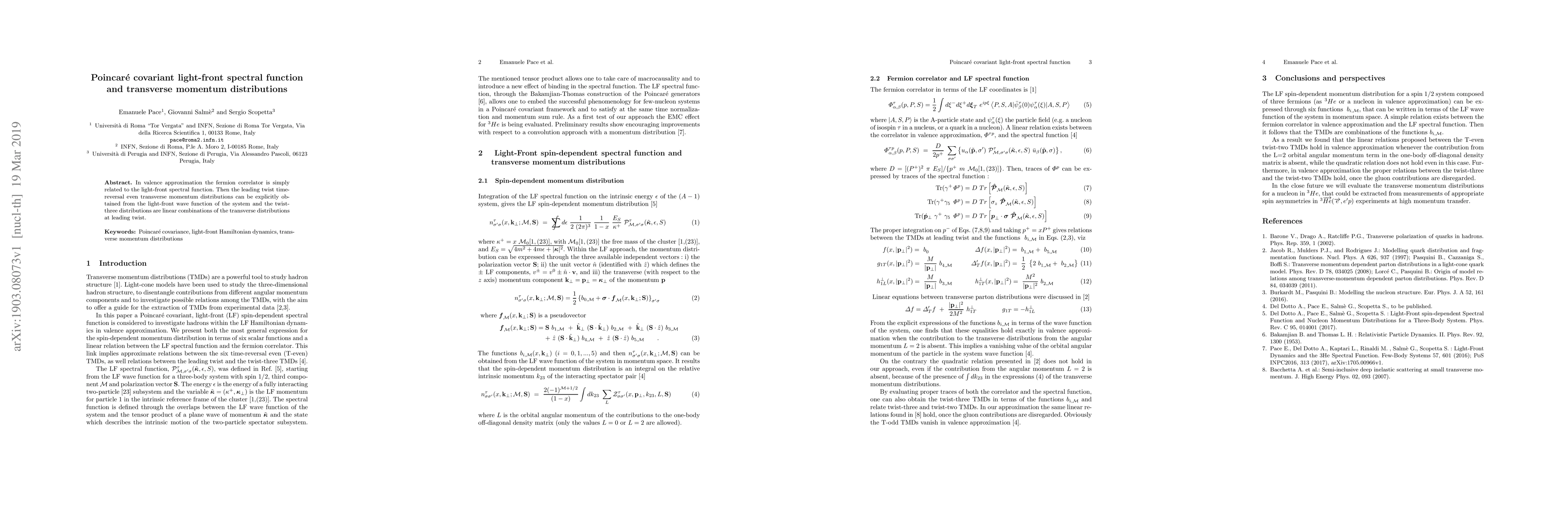 In valence approximation the fermion correlator is simply related to the light-front spectral function. Then the leading twist time-reversal even transverse momentum distributions can be explicitly obtained from the light-front wave function of the system and the twist-three distributions are linear combinations of the transverse distributions at leading twist.