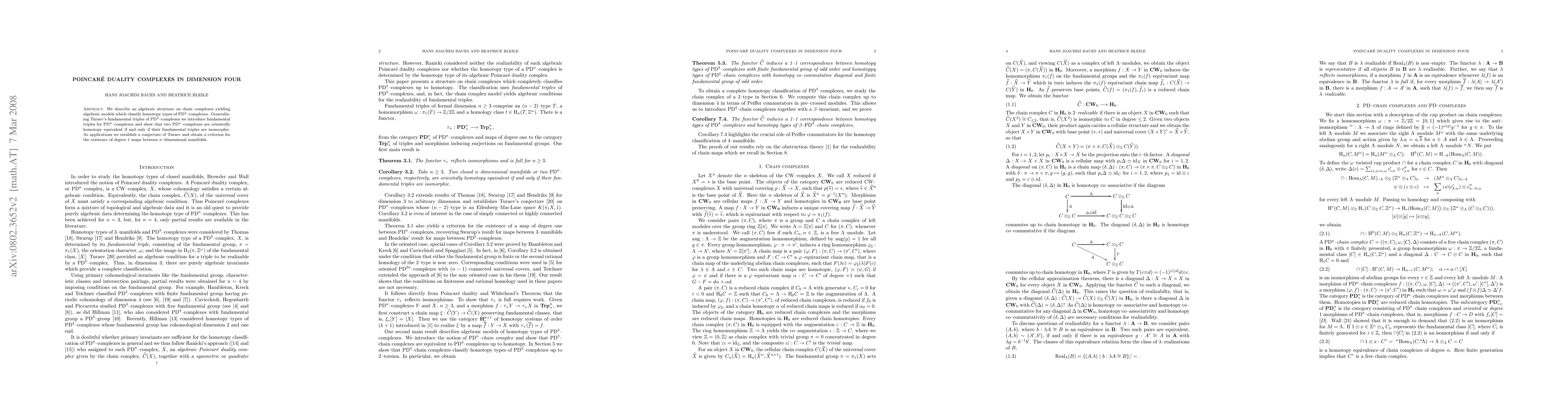 The paper introduces an algebraic structure for classifying the homotopy types of 4-dimensional Poincare duality complexes, generalizing Turaev's triples from dimension 3, and proves that two such complexes are orientedly homotopy equivalent if their fundamental triples are isomorphic. This leads to confirming a conjecture of Turaev and provides a criterion for degree 1 maps between n-dimensional manifolds.