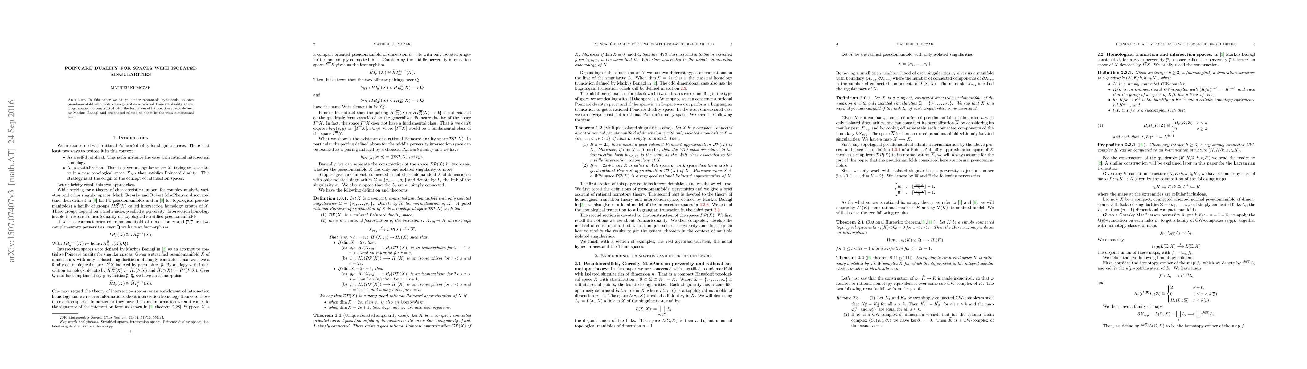 This paper establishes rational Poincaré duality for pseudomanifolds with isolated singularities, constructing these spaces using intersection space formalism and linking them to related constructs in even dimensions.
