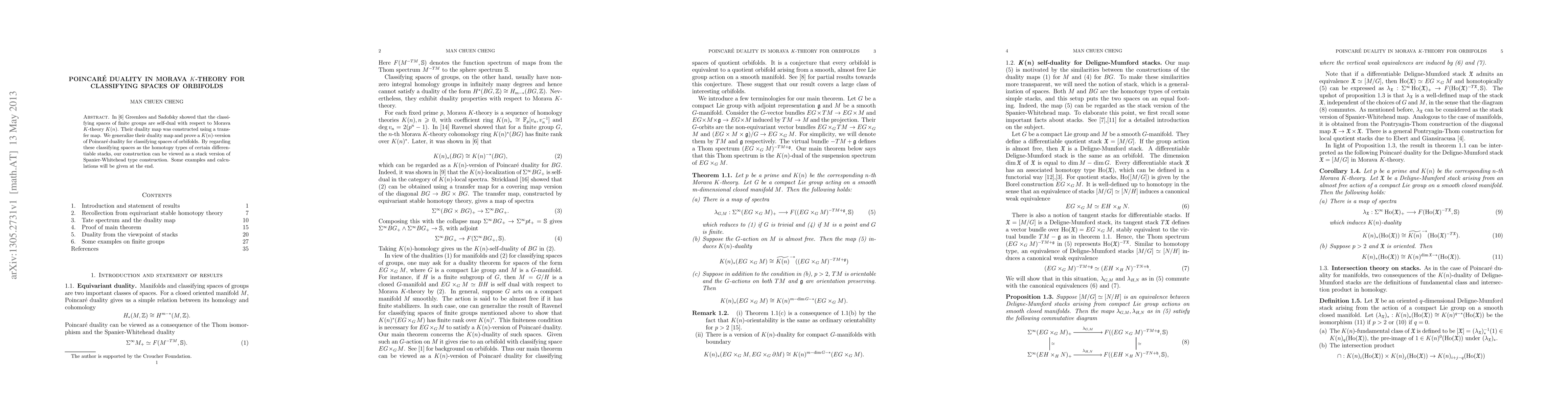 This paper generalizes duality maps for classifying spaces of finite groups in Morava K-theory to classifying spaces of orbifolds, establishing a Poincare duality result. The construction leverages a stack-theoretic interpretation of these classifying spaces.