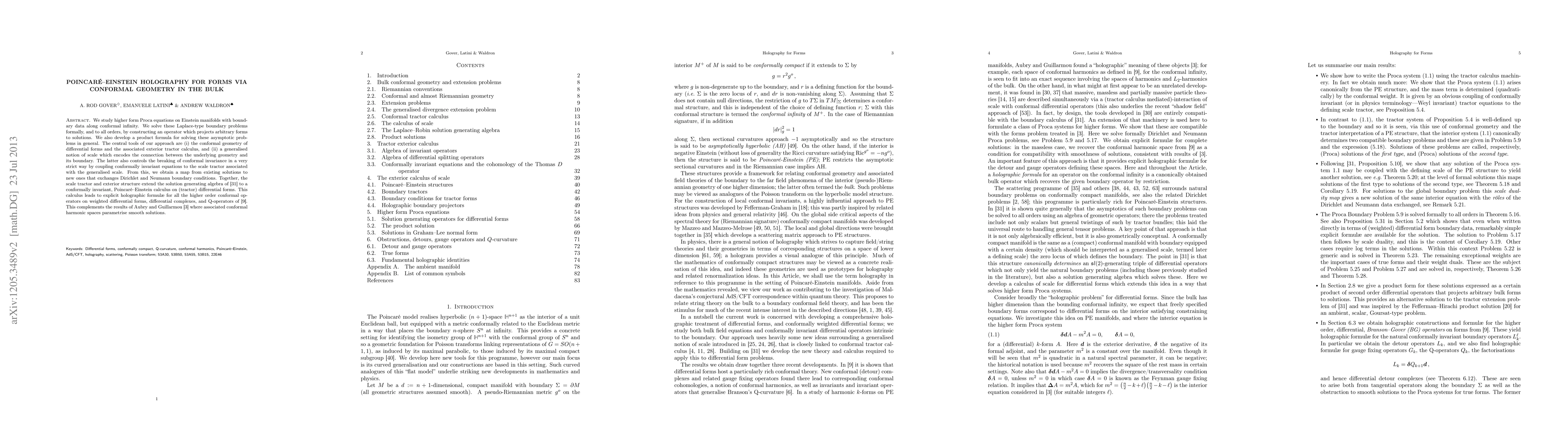 We study higher form Proca equations on Einstein manifolds with boundary data along conformal infinity. We solve these Laplace-type boundary problems formally, and to all orders, by constructing an operator which projects arbitrary forms to solutions. We also develop a product formula for solving these asymptotic problems in general. The central tools of our approach are (i) the conformal geometry of differential forms and the associated exterior tractor calculus, and (ii) a generalised notion of scale which encodes the connection between the underlying geometry and its boundary. The latter also controls the breaking of conformal invariance in a very strict way by coupling conformally invariant equations to the scale tractor associated with the generalised scale. From this, we obtain a map from existing solutions to new ones that exchanges Dirichlet and Neumann boundary conditions. Together, the scale tractor and exterior structure extend the solution generating algebra of [31] to a conformally invariant, Poincare--Einstein calculus on (tractor) differential forms. This calculus leads to explicit holographic formulae for all the higher order conformal operators on weighted differential forms, differential complexes, and Q-operators of [9]. This complements the results of Aubry and Guillarmou [3] where associated conformal harmonic spaces parametrise smooth solutions.