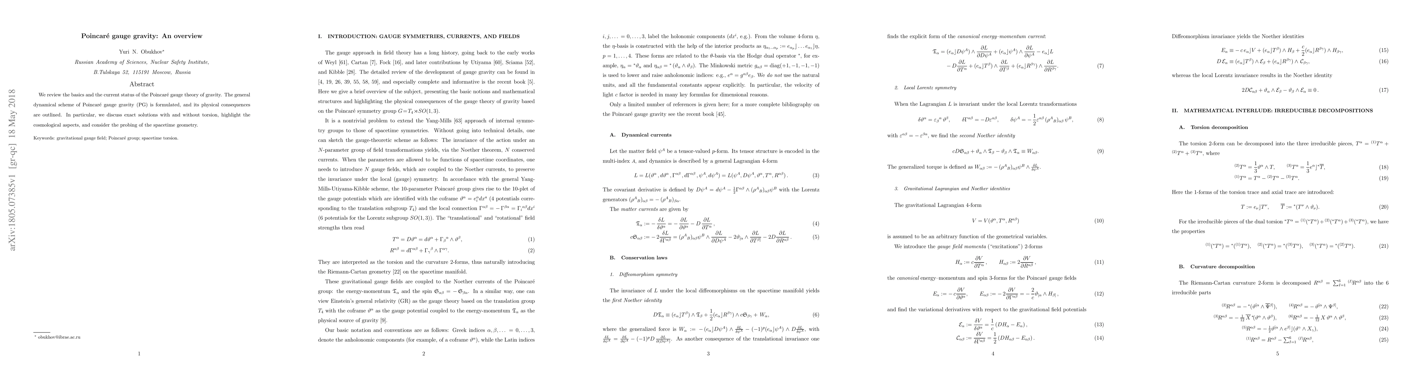 This paper provides an overview of Poincaré gauge theory of gravity, detailing its dynamical framework and physical implications, including exact solutions with torsion, cosmological aspects, and the probing of spacetime geometry.