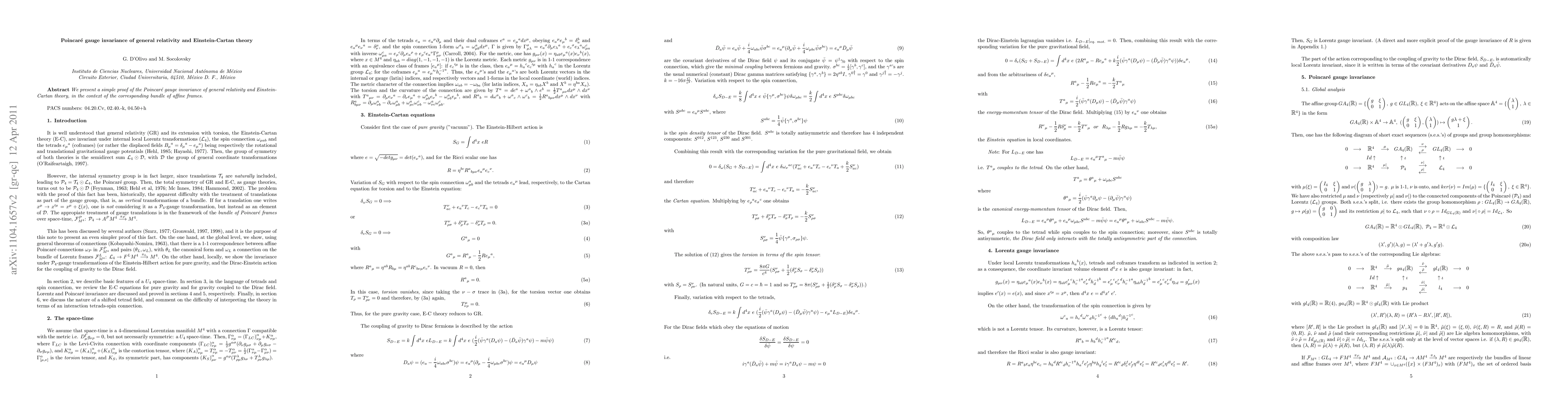 We present a simple proof of the Poincar\'e gauge invariance of general relativity and Einstein-Cartan theory, in the context of the corresponding bundle of affine frames.