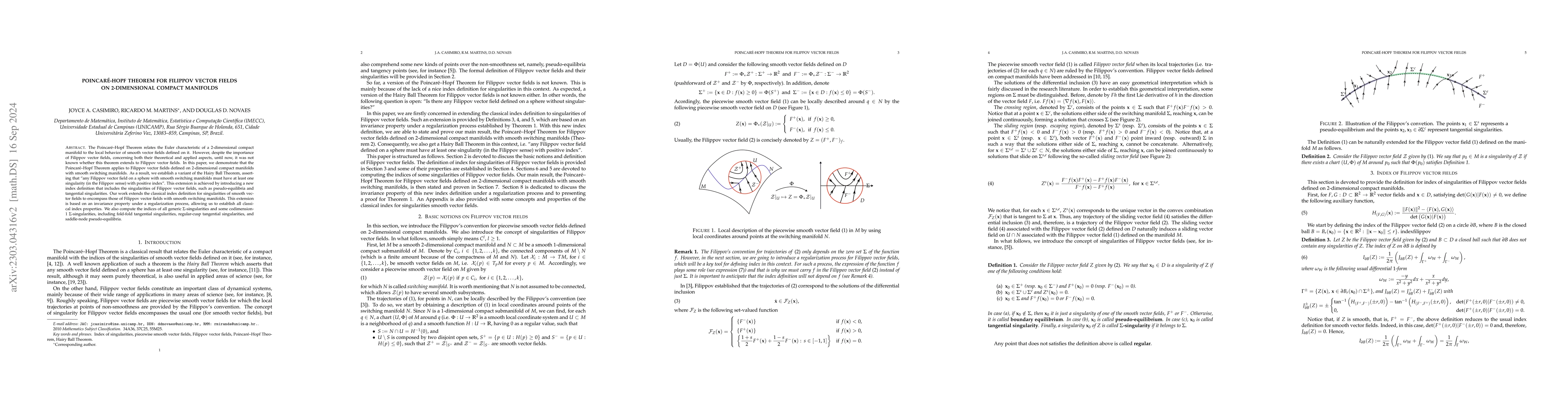 This paper extends the Poincaré-Hopf Theorem to Filippov vector fields on 2-dimensional compact manifolds, addressing singularities like pseudo-equilibria and tangency points. It introduces a new index definition for these singularities based on invariance under regularization, proving a version of the Poincaré-Hopf Theorem and a Hairy Ball Theorem for Filippov vector fields.