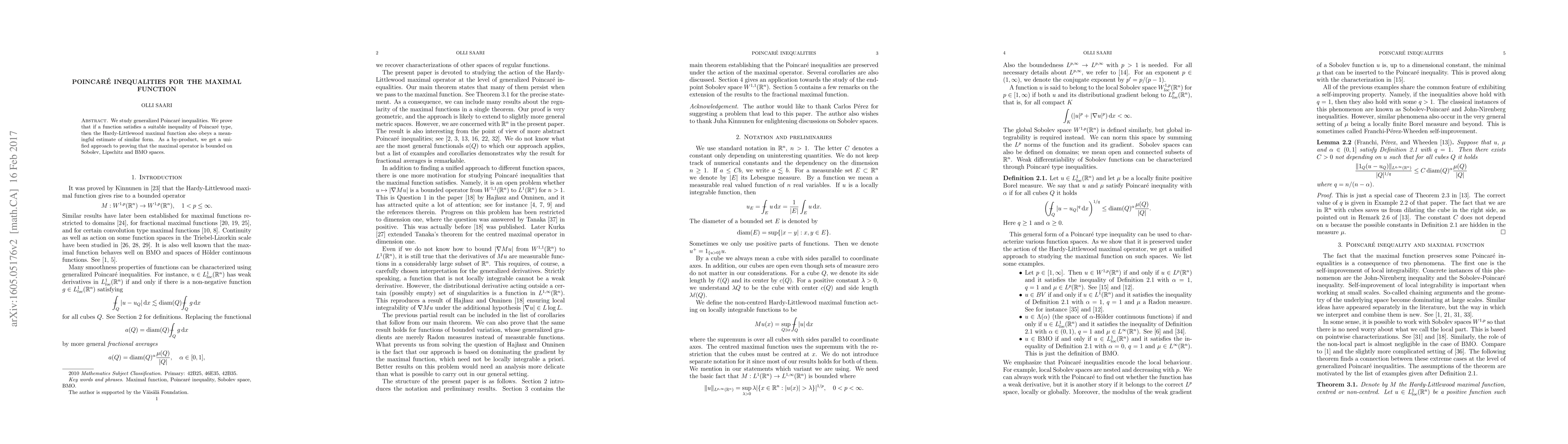 This paper proves generalized Poincaré inequalities and shows that functions satisfying these inequalities lead to meaningful estimates for the Hardy-Littlewood maximal function. As a result, it provides a unified approach to demonstrating the boundedness of the maximal operator on Sobolev, Lipschitz, and BMO spaces.