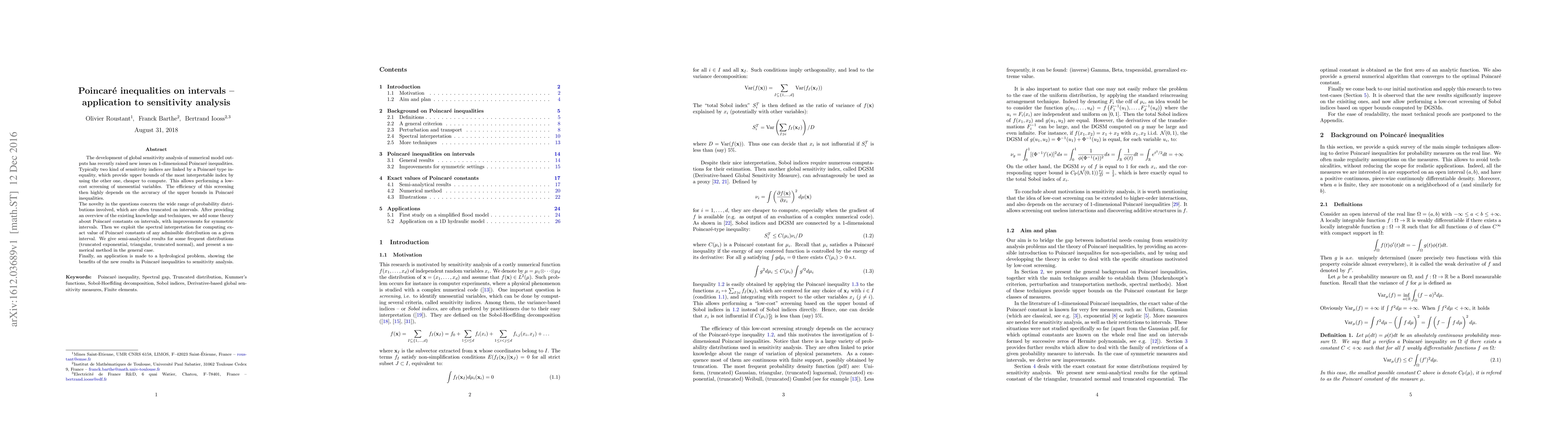 This paper develops new insights into Poincar\'e inequalities on intervals, focusing on their application to global sensitivity analysis of numerical models. It introduces improved theoretical methods for computing Poincar\'e constants for truncated distributions and demonstrates their effectiveness through a hydrological problem.