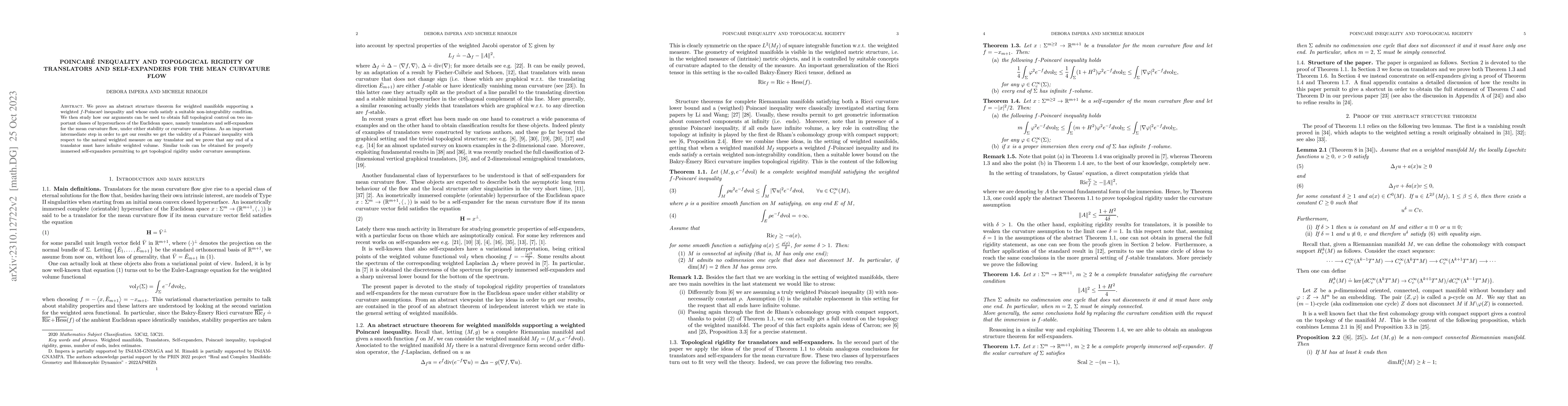 This paper establishes a structure theorem for weighted manifolds satisfying a weighted Poincaré inequality and a non-integrability condition. It demonstrates topological rigidity for translators and self-expanders in Euclidean space under stability or curvature assumptions, leveraging a Poincaré inequality on translators and proving infinite weighted volume for their ends.