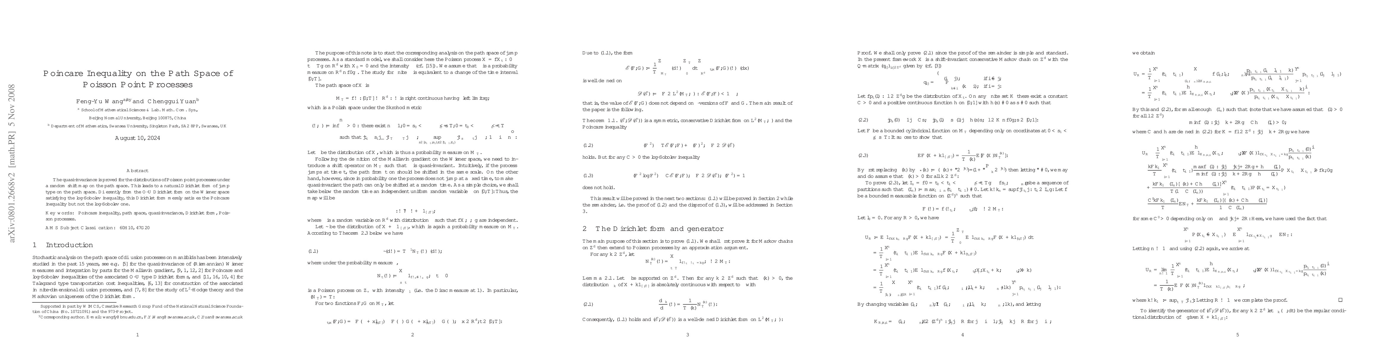 This paper proves the quasi-invariance of Poisson point processes under random shift maps on the path space, leading to a new jump type Dirichlet form. Unlike the O-U form on Wiener space, this form satisfies only the Poincaré inequality, not the log-Sobolev inequality.