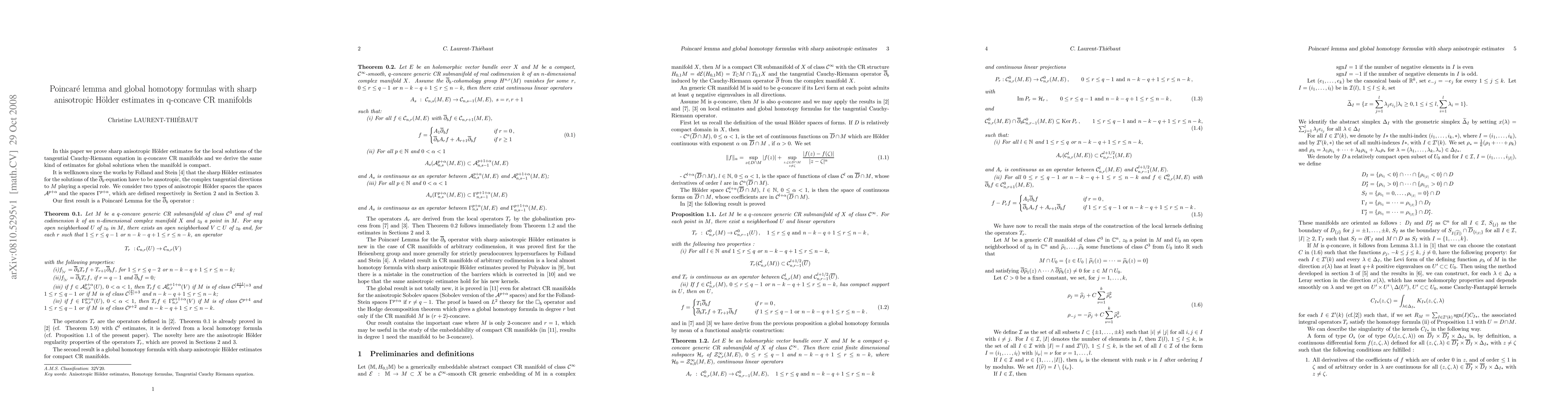 Summary: This paper establishes sharp anisotropic H\"older estimates for local and global solutions of the tangential Cauchy-Riemann equation in q-concave CR manifolds, particularly focusing on compact manifolds. The results extend the Poincar\'e lemma and global homotopy formulas within this context.