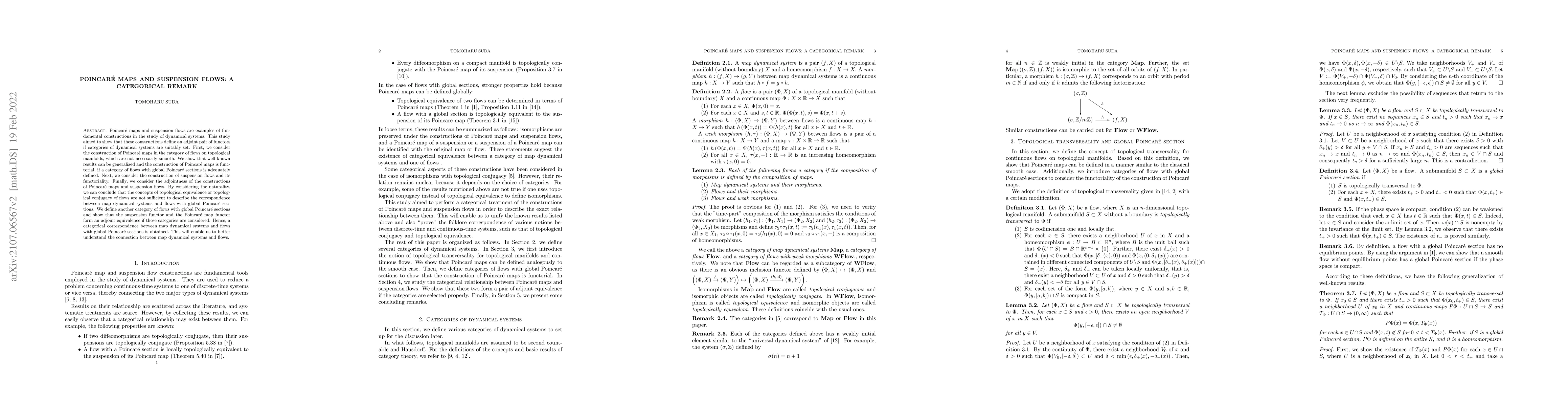 This paper demonstrates that Poincaré maps and suspension flows define an adjoint pair of functors in suitably defined categories of dynamical systems. It establishes the functoriality of Poincaré maps and suspension flows and argues that the categorical correspondence provides a deeper understanding of the relationship between map dynamical systems and flows with global Poincaré sections.