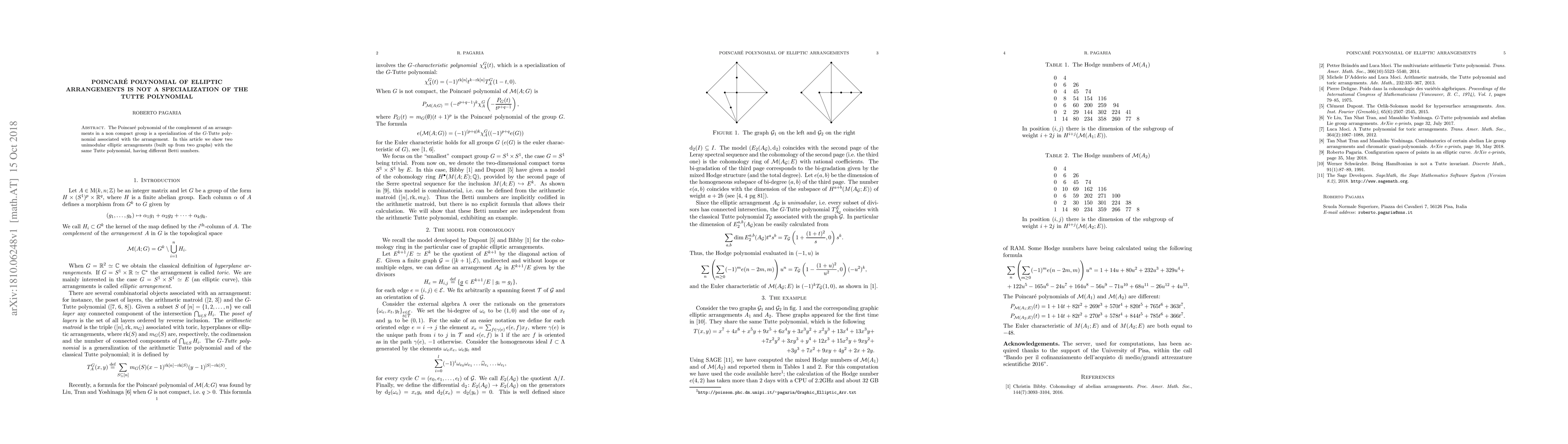Summary: This paper demonstrates that the Poincaré polynomial of elliptic arrangements does not arise as a specialization of the Tutte polynomial, using two unimodular elliptic arrangements with identical Tutte polynomials but differing Betti numbers as a case study.