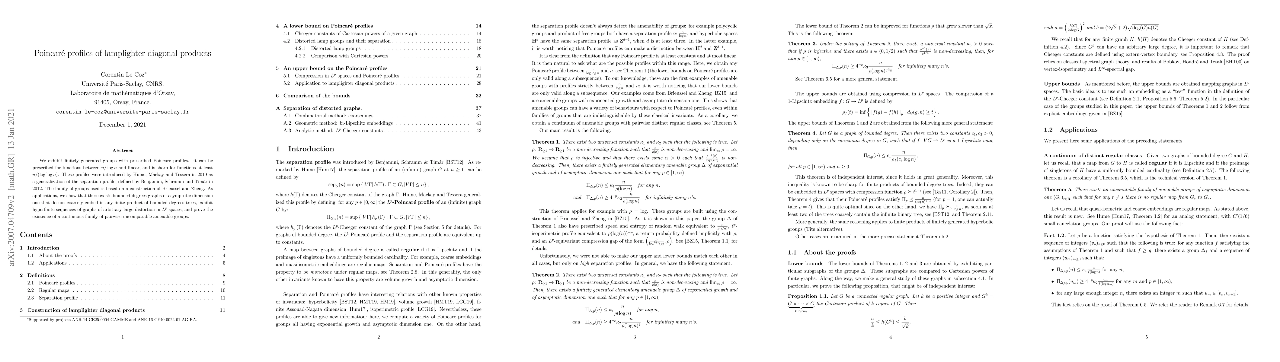 Researchers develop finitely generated groups with specific properties, including Poincaré profiles, which help identify certain graph structures and sequences that cannot be coarse embeddings of finite product trees.