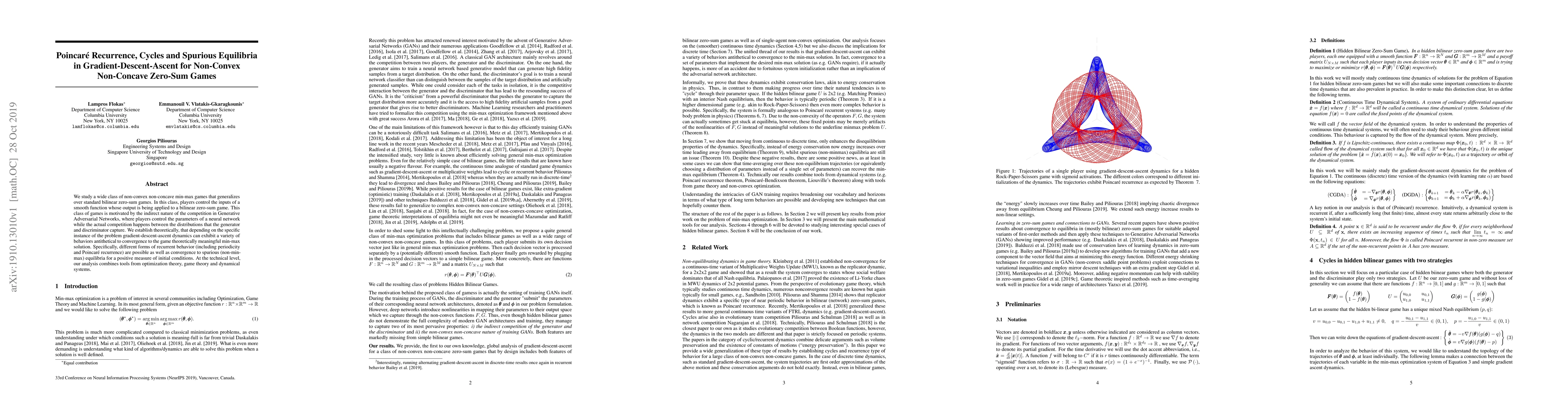 This paper investigates non-convex non-concave zero-sum games, extending beyond standard bilinear forms, and finds that gradient-descent-ascent dynamics can lead to recurrent behaviors and spurious equilibria instead of converging to meaningful min-max solutions. The study combines optimization, game theory, and dynamical systems to analyze these phenomena.