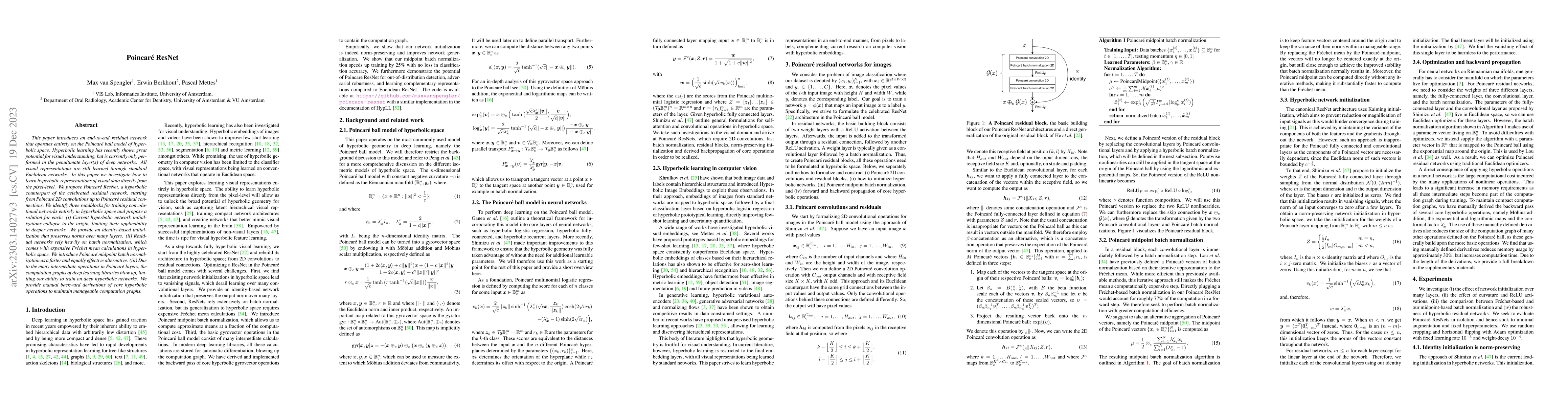 This paper introduces Poincar\'e ResNet, a novel residual network operating entirely in hyperbolic space, aiming to learn visual representations directly from pixel-level data. It addresses challenges in training such networks, including initialization, batch normalization, and computation graph management, proposing solutions like identity-based initialization, Poincaré midpoint batch normalization, and manual backward derivations.