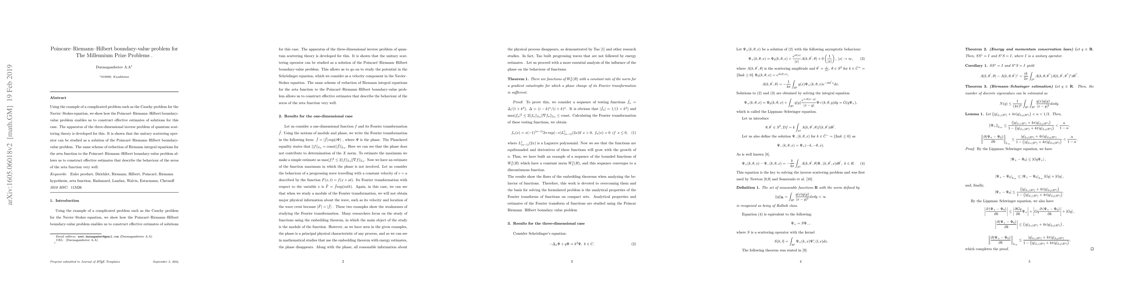 This paper demonstrates the utility of the Poincar\'e--Riemann--Hilbert boundary-value problem in constructing effective estimates for complex problems, such as the Navier--Stokes equation, and applies it to the Millennium Prize Problems, notably the Riemann zeta function's zeros.