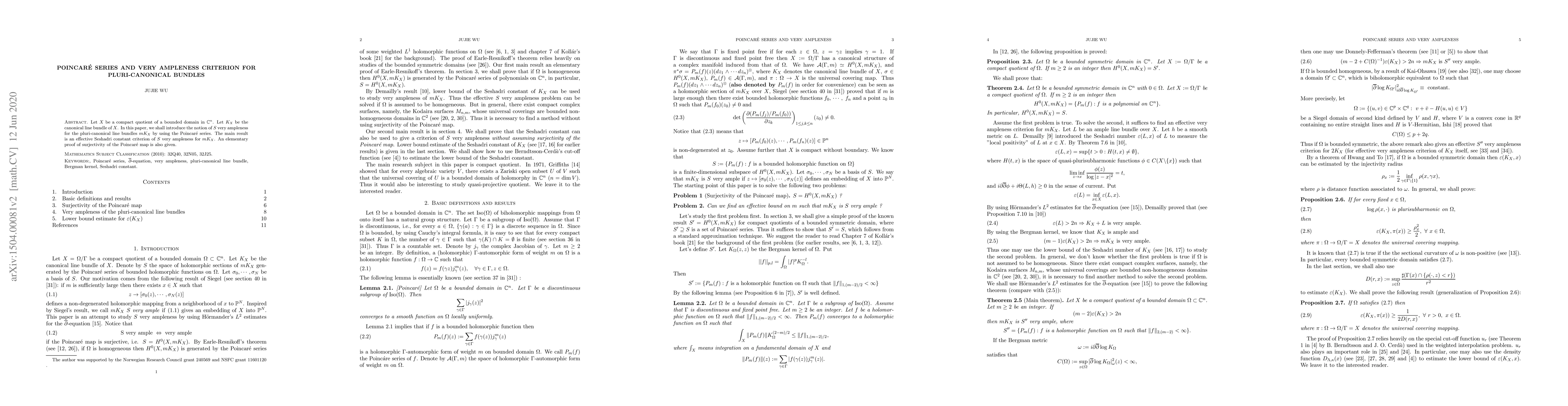 Let $X$ be a compact quotient of a bounded domain in $\mathbb C^n$. Let $K_X$ be the canonical line bundle of $X$. In this paper, we shall introduce the notion of $S$ very ampleness for the pluri-canonical line bundles $mK_X$ by using the Poincar\'e series. The main result is an effective Seshadri constant criterion of $S$ very ampleness for $mK_X$. An elementary proof of surjectivity of the Poincar\'e map is also given.