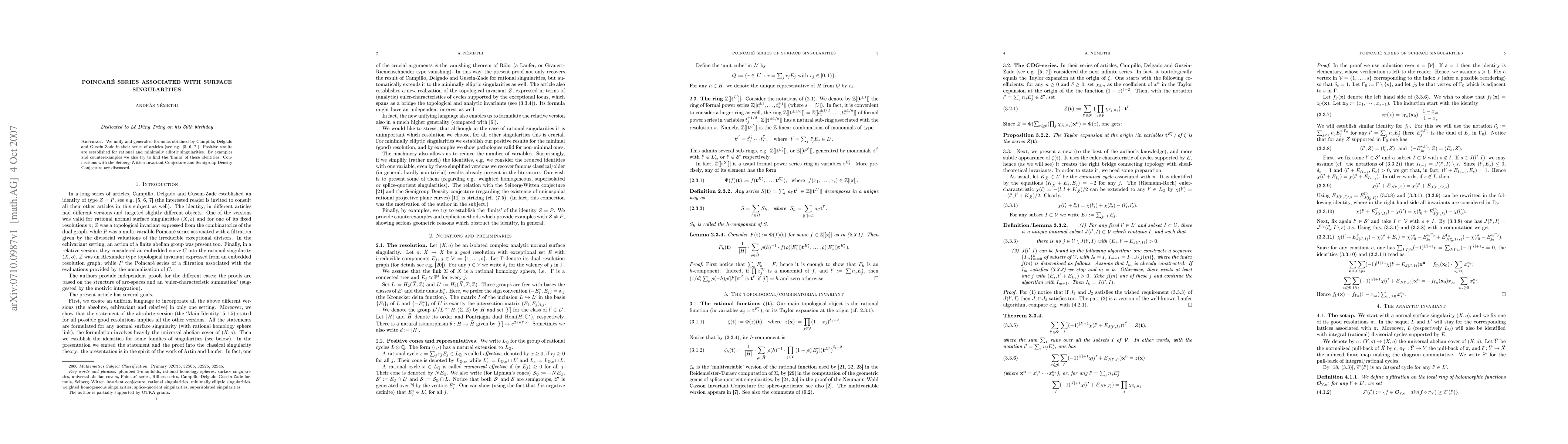 Researchers unified formulas for Poincaré series associated with surface singularities, establishing positive results for rational and minimally elliptic cases, while exploring connections to other conjectures.
