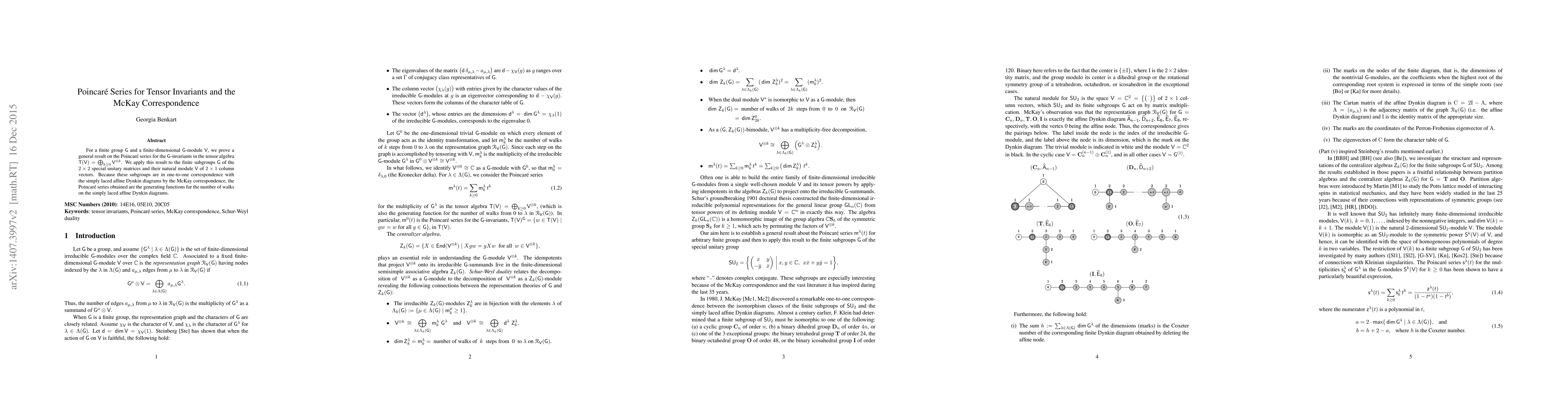 This paper proves a result on the Poincar\'e series for tensor invariants of finite groups acting on vector spaces, and applies it to finite subgroups of SU(2), linking their invariants to walks on simply laced affine Dynkin diagrams via the McKay correspondence.
