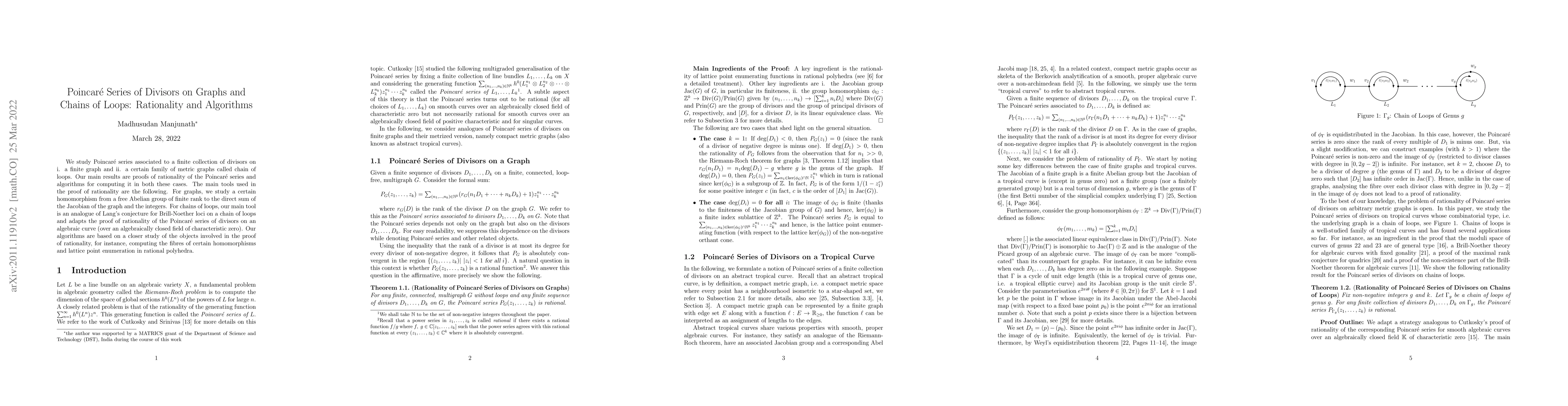 This paper explores the rationality of Poincaré series for divisors on finite graphs and chains of loops, proving their rationality and presenting algorithms to compute them. Tools include a homomorphism study for graphs and Lang's conjecture analogue for chains of loops, alongside lattice point enumeration.