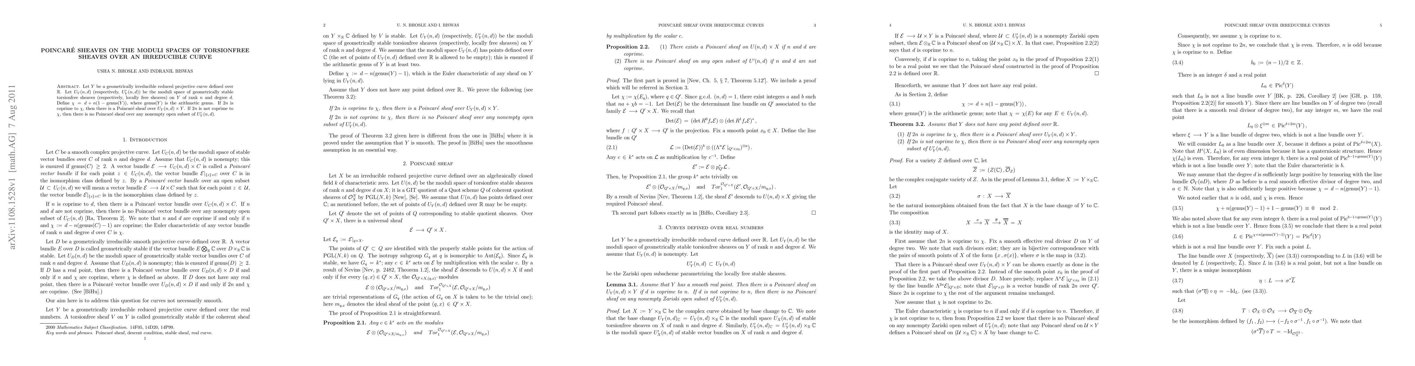 Summary: This paper establishes the existence of Poincare sheaves over moduli spaces of torsionfree sheaves on an irreducible projective curve, dependent on the rank, degree, and genus of the curve, with conditions on the coprimality of these parameters determining sheaf presence.