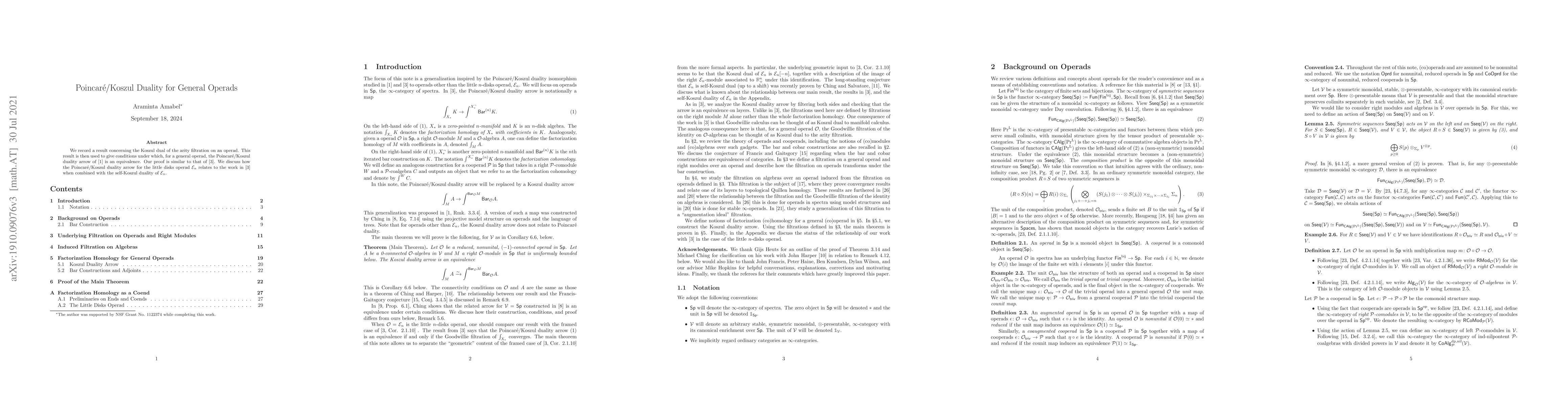 We record a result concerning the Koszul dual of the arity filtration on an operad. This result is then used to give conditions under which, for a general operad, the Poincar\'e/Koszul duality arrow of Ayala-Francis is an equivalence. We discuss how the Poincar\'e/Koszul duality arrow for the little $n$-disks operad $\mathcal{E}_n$ relates to their work when combined with the self-Koszul duality of $\mathcal{E}_n$.