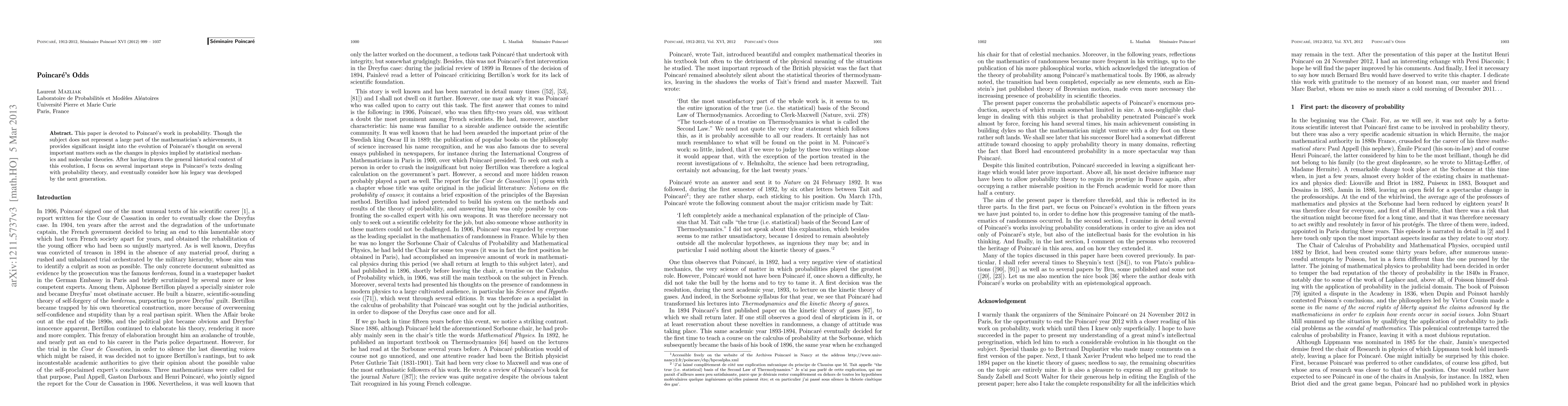 This paper explores Poincaré's contributions to probability theory, highlighting his insights into the implications of statistical mechanics and molecular theories on physics. It examines key developments in his work and assesses how his ideas influenced subsequent generations.