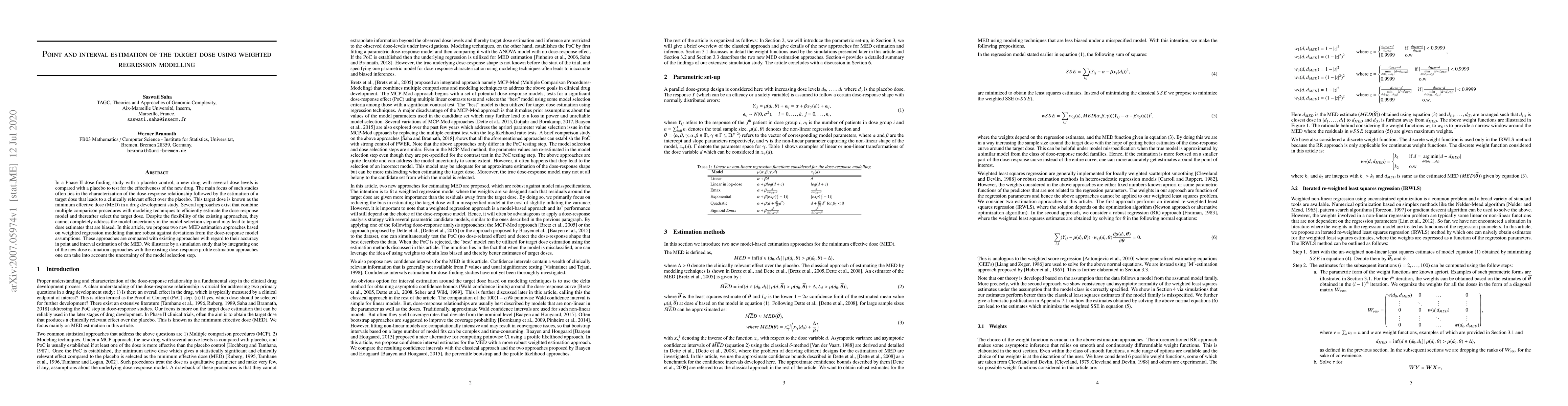 This paper proposes two new weighted regression modeling approaches for estimating the minimum effective dose (MED) in Phase II dose-finding studies, aiming to address model uncertainty and bias. The proposed methods are compared with existing techniques, demonstrating improved accuracy in point and interval estimation of the MED through a simulation study.