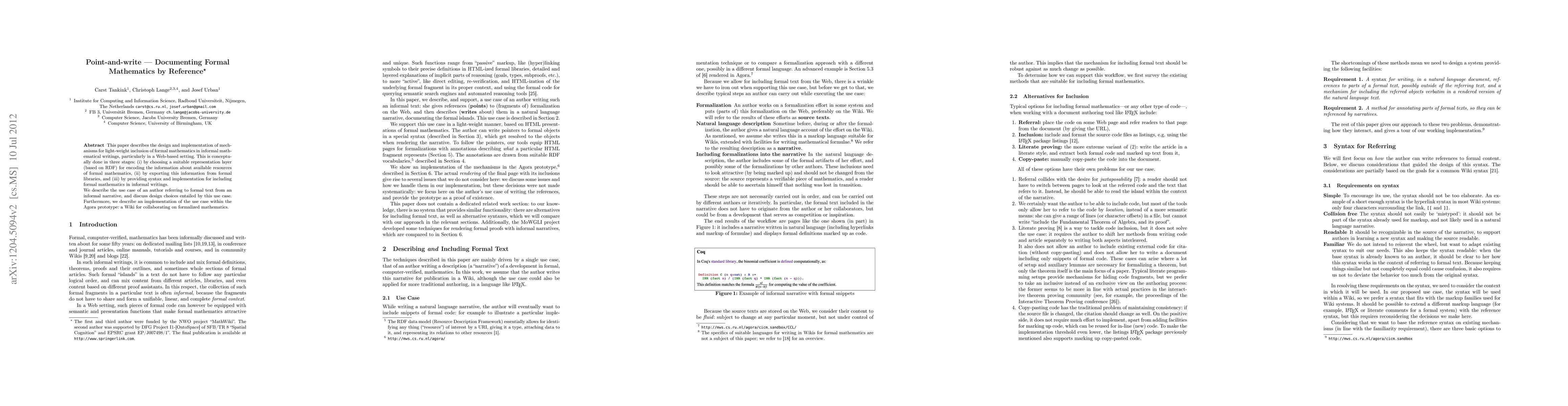 This paper introduces mechanisms for embedding formal mathematics in informal writings using a Web-based system, focusing on representation, exportation of formal libraries, and syntax integration. The Agora prototype is showcased as an implementation facilitating collaborative formalized mathematics.