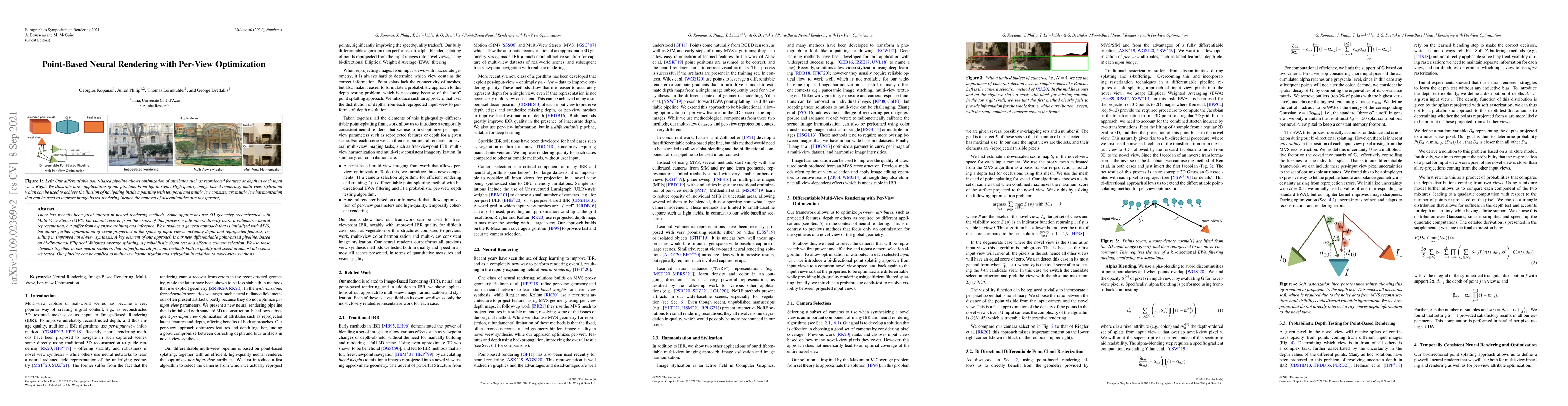 There has recently been great interest in neural rendering methods. Some approaches use 3D geometry reconstructed with Multi-View Stereo (MVS) but cannot recover from the errors of this process, while others directly learn a volumetric neural representation, but suffer from expensive training and inference. We introduce a general approach that is initialized with MVS, but allows further optimization of scene properties in the space of input views, including depth and reprojected features, resulting in improved novel-view synthesis. A key element of our approach is our new differentiable point-based pipeline, based on bi-directional Elliptical Weighted Average splatting, a probabilistic depth test and effective camera selection. We use these elements together in our neural renderer, that outperforms all previous methods both in quality and speed in almost all scenes we tested. Our pipeline can be applied to multi-view harmonization and stylization in addition to novel-view synthesis.