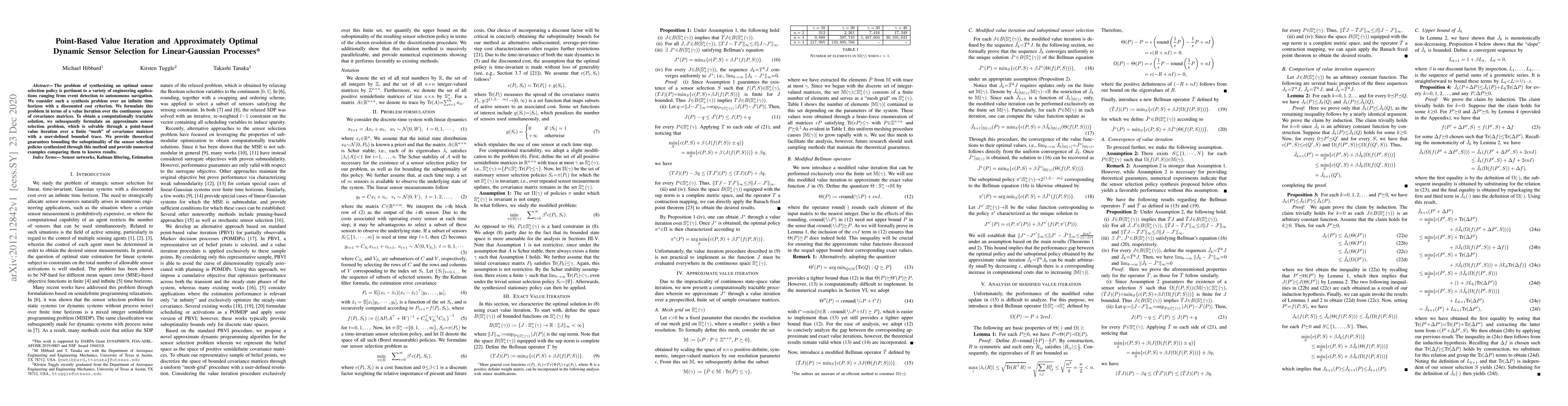 The problem of synthesizing an optimal sensor selection policy is pertinent to a variety of engineering applications ranging from event detection to autonomous navigation. We consider such a synthesis problem over an infinite time horizon with a discounted cost criterion. We formulate this problem in terms of a value iteration over the continuous space of covariance matrices. To obtain a computationally tractable solution, we subsequently formulate an approximate sensor selection problem, which is solvable through a point-based value iteration over a finite "mesh" of covariance matrices with a user-defined bounded trace. We provide theoretical guarantees bounding the suboptimality of the sensor selection policies synthesized through this method and provide numerical examples comparing them to known results.