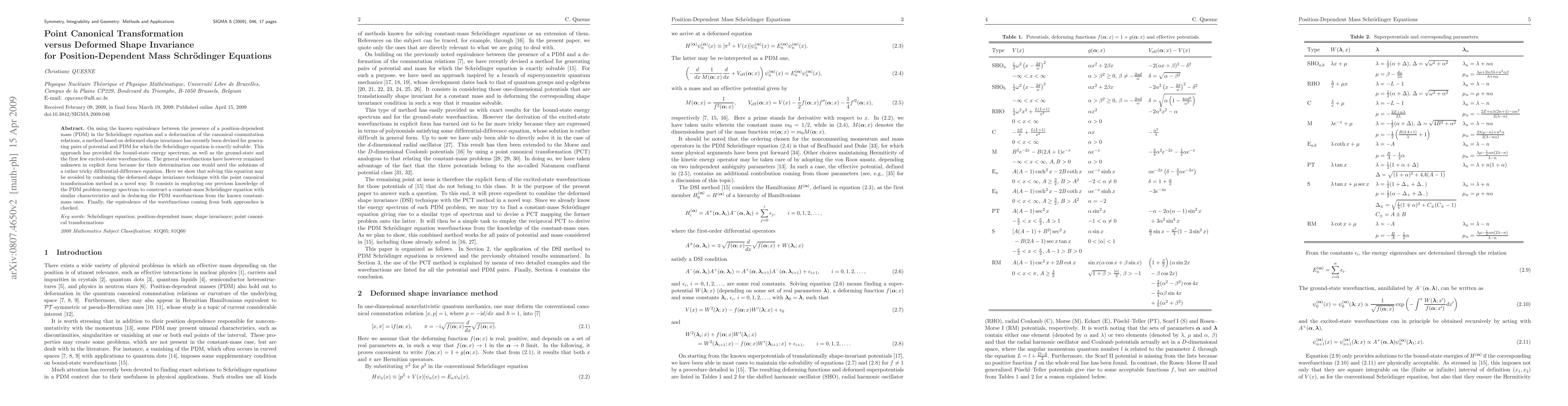 This paper combines deformed shape invariance with point canonical transformation to solve the position-dependent mass Schrödinger equation without resorting to a complex differential-difference equation. The method leverages known energy spectra to derive wavefunctions for the position-dependent mass problem from simpler constant-mass Schrödinger equations.