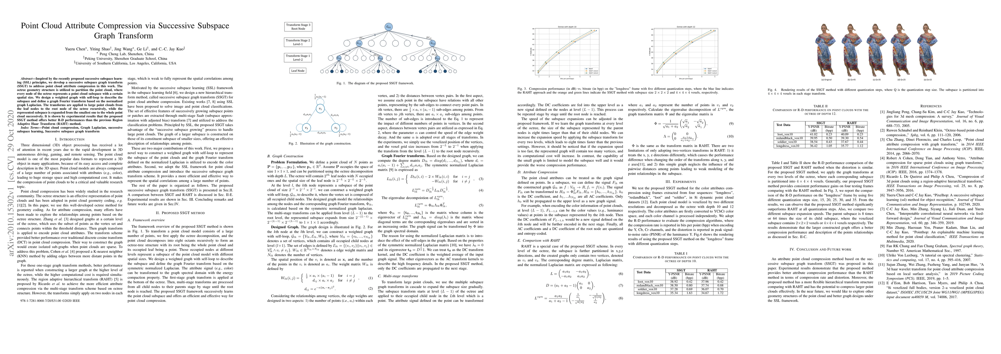 A new method called Successive Subspace Graph Transform (SSGT) compresses point cloud attributes using a weighted graph with self-loops, offering better R-D performances than previous methods.