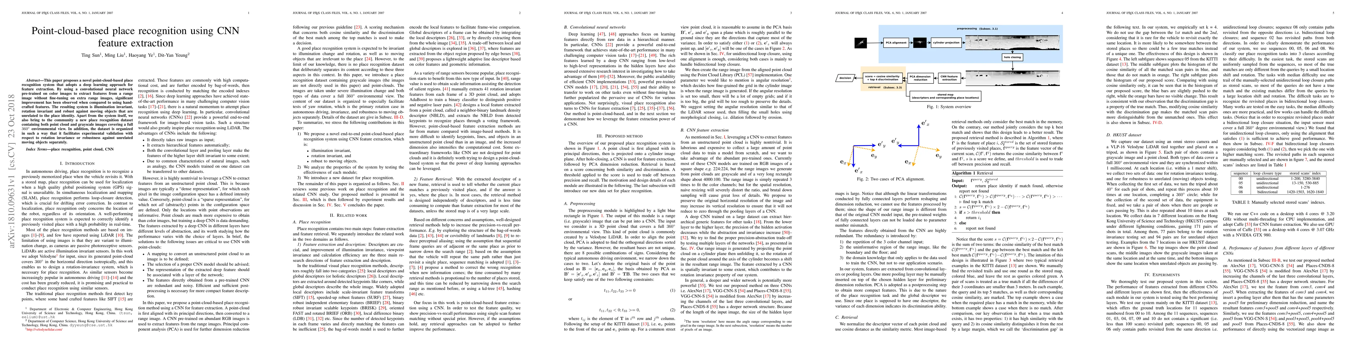 This paper introduces a deep learning-based place recognition system using CNNs for feature extraction from point clouds, achieving significant improvements over hand-crafted methods. The system is robust to illumination and rotation changes, and includes a new dataset for experimental validation.