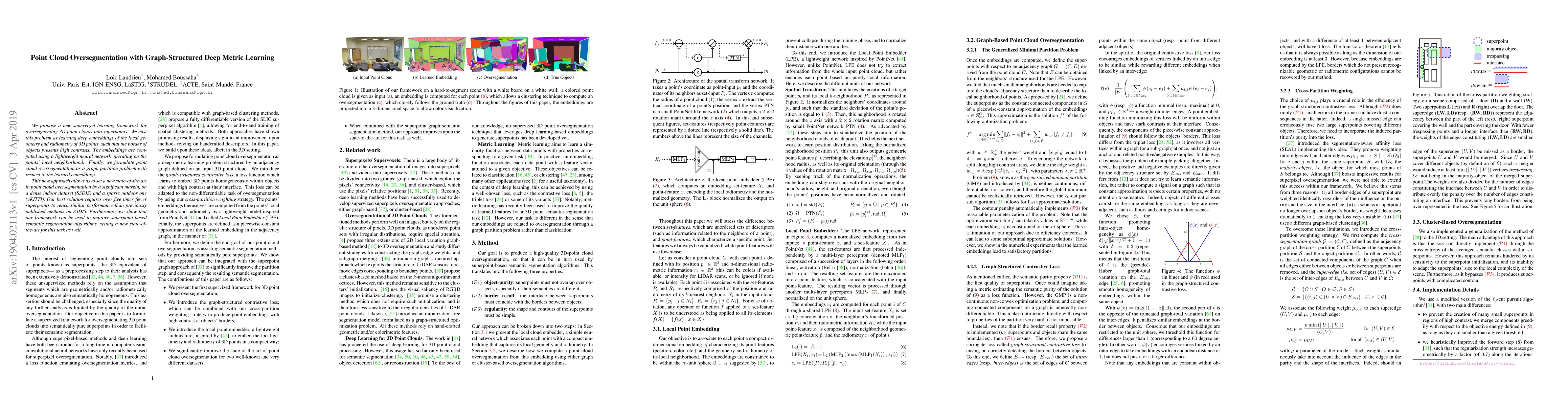 This paper introduces a supervised learning framework for oversegmenting 3D point clouds into superpoints using graph-structured deep metric learning, achieving state-of-the-art results on indoor and outdoor datasets while requiring fewer superpoints. The method also enhances superpoint-based semantic segmentation performance.