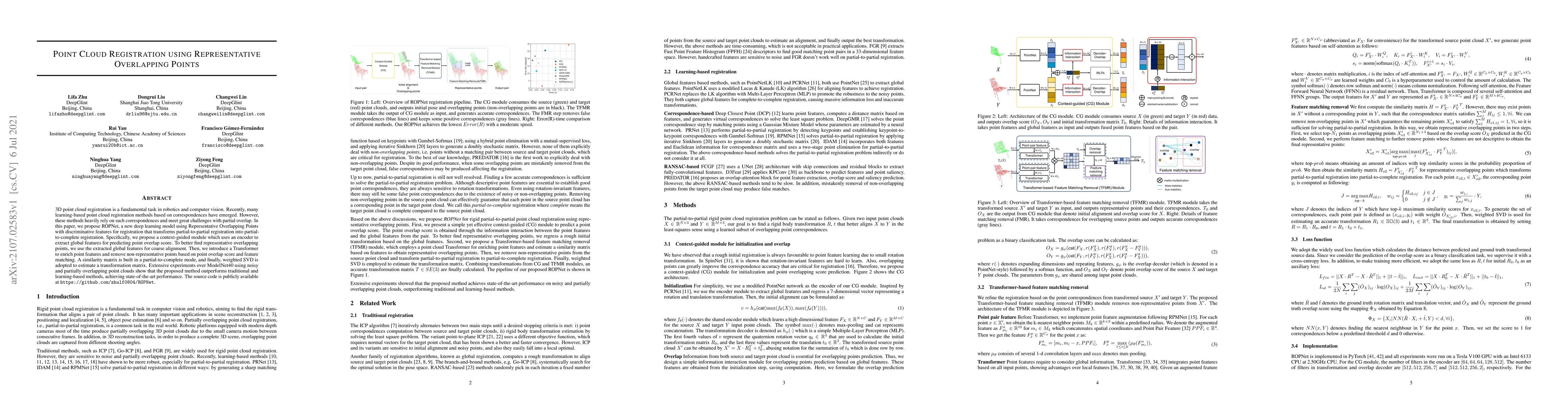 This paper introduces ROPNet, a deep learning model for point cloud registration using Representative Overlapping Points, transforming partial-to-partial into partial-to-complete registration. It employs a context-guided module and Transformer to enhance feature extraction and alignment, achieving superior performance on ModelNet40.