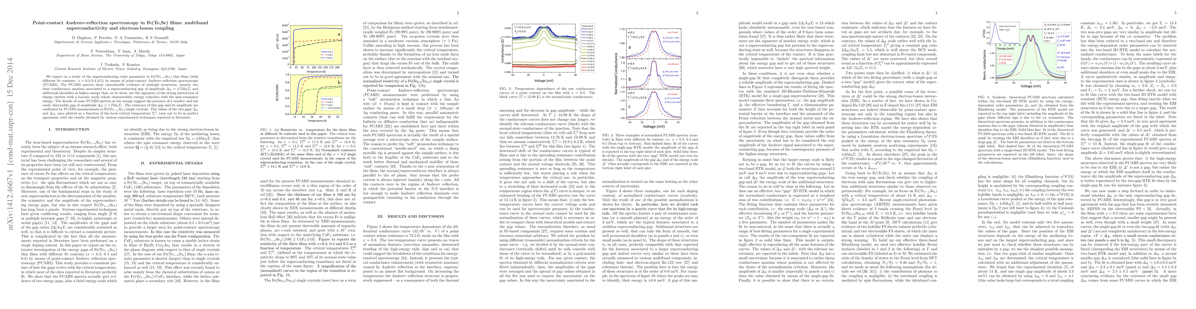 We report on a study of the superconducting order parameter in Fe(Te$_{1-x}$Se$_{x}$) thin films (with different Se contents: x=0.3, 0.4, 0.5) by means of point-contact Andreev-reflection spectroscopy (PCARS). The PCARS spectra show reproducible evidence of multiple structures, namely two clear conductance maxima associated to a superconducting gap of amplitude $\Delta_E \simeq 2.75 k_B T_c$ and additional shoulders at higher energy that, as we show, are the signature of the strong interaction of charge carriers with a bosonic mode whose characteristic energy coincides with the spin-resonance energy. The details of some PCARS spectra at low energy suggest the presence of a smaller and not easily discernible gap of amplitude $\Delta_H \simeq 1.75 k_B T_c$. The existence of this gap and its amplitude are confirmed by PCARS measurements in Fe(Te$_{1-x}$Se$_{x}$) single crystals. The values of the two gaps $\Delta_E$ and $\Delta_H$, once plotted as a function of the local critical temperature $T_c^A$, turn out to be in perfect agreement with the results obtained by various experimental techniques reported in literature.