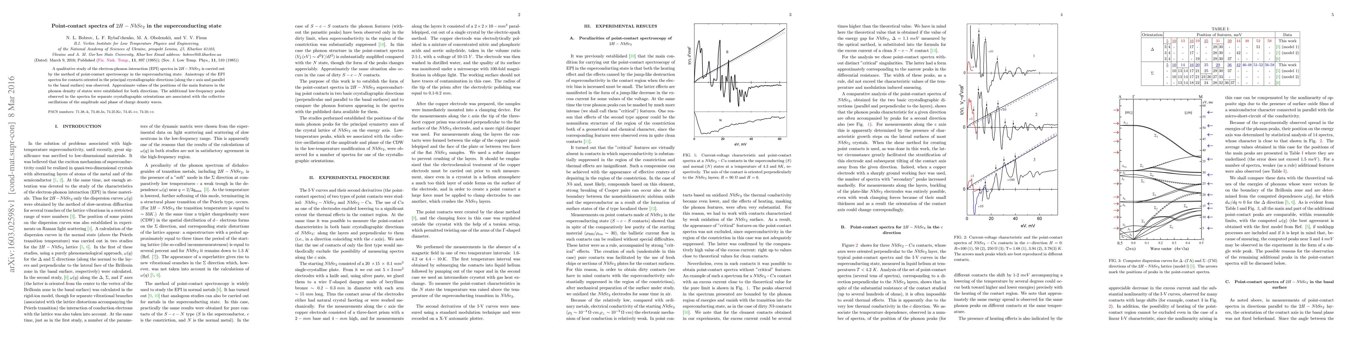 Researchers studied $2H-NbS{{e}_{2}}$ in its superconducting state using point-contact spectroscopy to observe anisotropy in electron-phonon interaction spectra, revealing low-frequency peaks associated with charge density waves.
